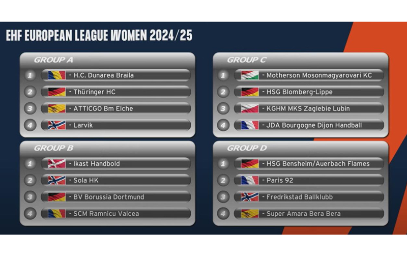 Astăzi, la Viena (Austria), a avut loc tragerea la sorți pentru grupele EHF European League, competiție în care sunt angrenate HC Dunărea Brăila și SCM Râmnicu Vâlcea.
