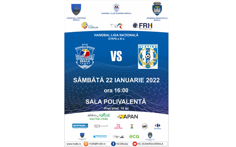 HC Dunărea va juca sâmbătă, de la ora 16.00, tot pe teren propriu, cu una dintre codașele Ligii Florilor, CSM Slatina. Echipa brăileană are 19 puncte și ocupă locul al 5-lea, în timp ce formația din Slatina se află pe poziția a 12-a.