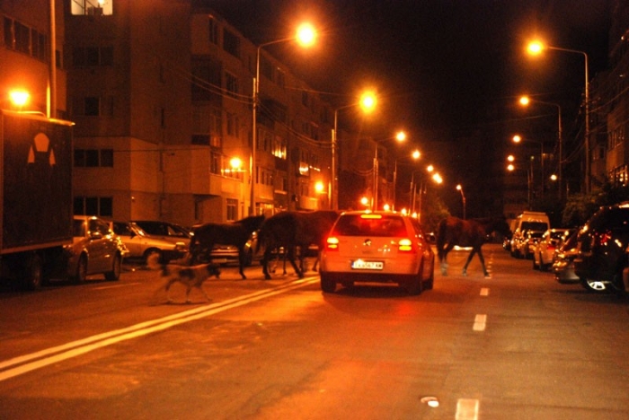 Pe lângă haitele de câini care fac legea prin cartiere după căderea întunericului, la Brăila trebuie să te fereşti, mai nou, şi de mici herghelii de cai, lăsate libere pe străzi. Sâmbătă seara, pe Calea Galaţi, aproape de capătul liniei 2, de la ieşirea din cartierul Vidin, carosabilul era ocupat de vreo 10 cai. Animalele mergeau agale pe asfalt, fără a fi însoţite de nimeni, iar maşinile erau obligate să frâneze ca să nu provoace un carnagiu. De altfel, nu doar caii erau în pericol, ci şi şoferii, precum şi ceilalţi ocupanţi ai autoturismelor, deoarece un impact cu un patruped de o asemenea talie ar putea produce avarii serioase.