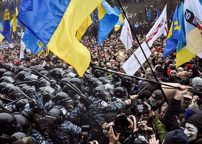 În noaptea de sâmbătă spre duminică, forţele speciale de la Kiev au dispersat un protest paşnic al studenţilor, lovind cu picioarele şi cu bastoanele în protestatari. Surse din cadrul Ministerului de Interne ucrainean au declarat că forţele speciale au acţionat la comanda Primăriei Capitalei, întrucât aceasta avea misiunea să elibereze piaţa pentru a instalarea bradului de Crăciun.