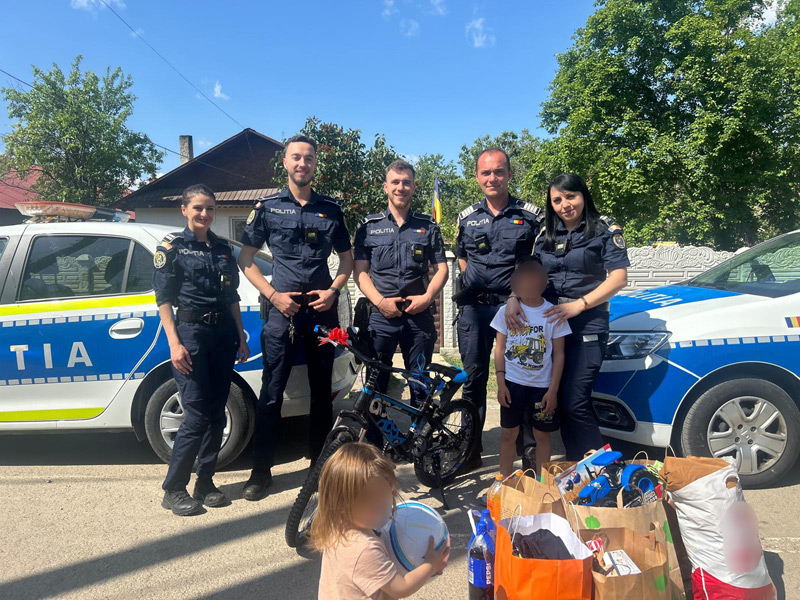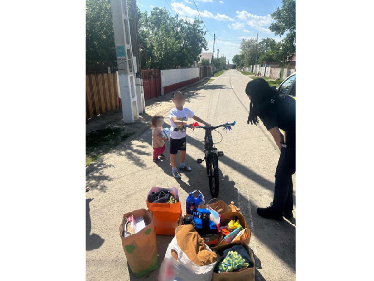 • la data 5 mai, polițiștii din Orașul Ianca și de la Secția 4 Poliție Rurală Ianca au mers la familia cu şapte copii şi le-au oferit alimente, dulciuri, jucării și hăinuțe • polițiștii au adus bucurie şi zâmbete pe fața și în sufletele celor mici