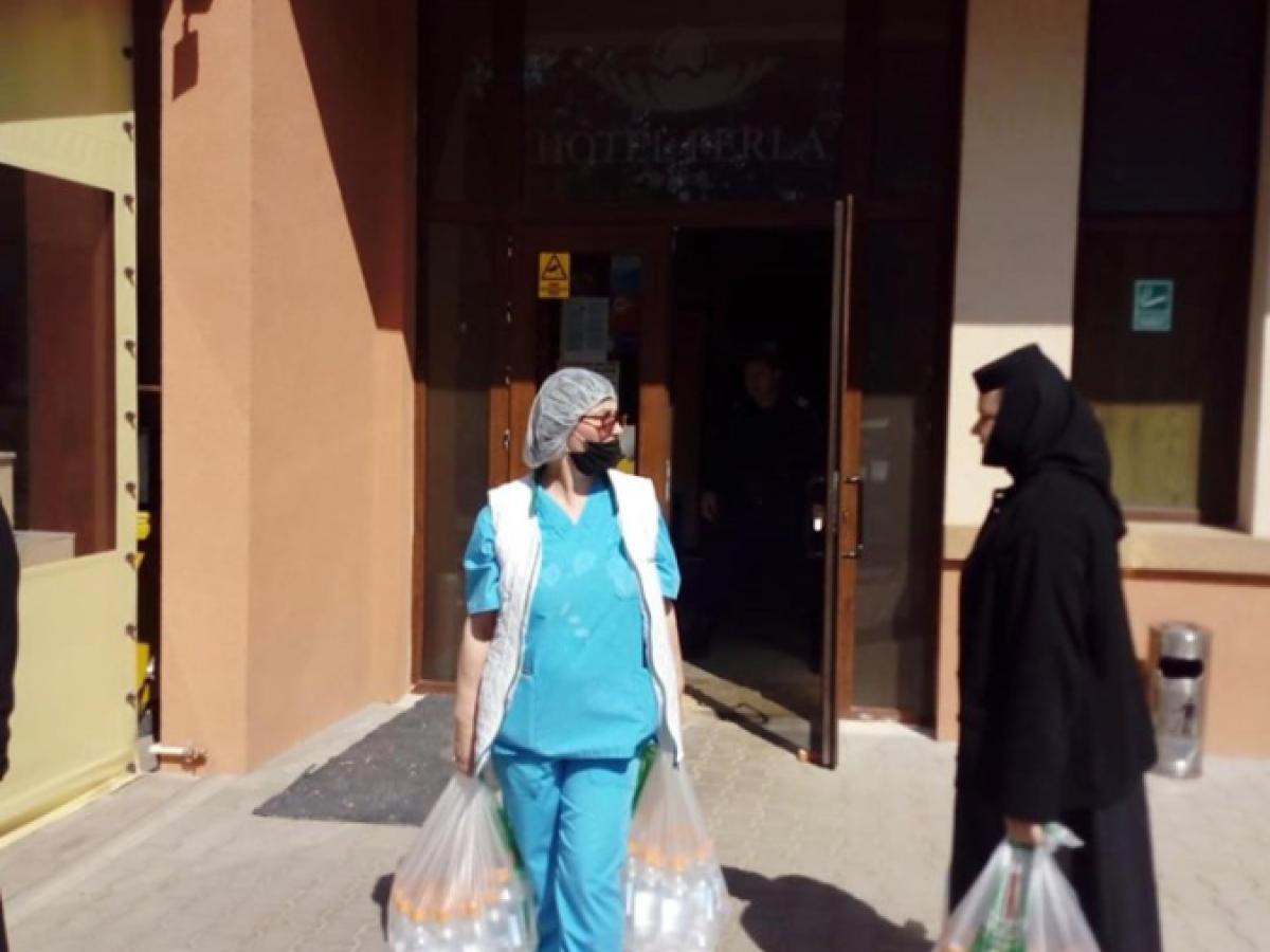 În aceeași zi, monahiile de la Mănăstirea „Sfântul Mare Mucenic Pantelimon” au împărțit sute de sticle cu agheazmă - pregătită din vreme la Biserica Greacă și binecuvântată de ierarh - tuturor celor aflați în carantină, precum și bătrânilor de la Căminul pentru Persoane Vârstnice Lacu Sărat.