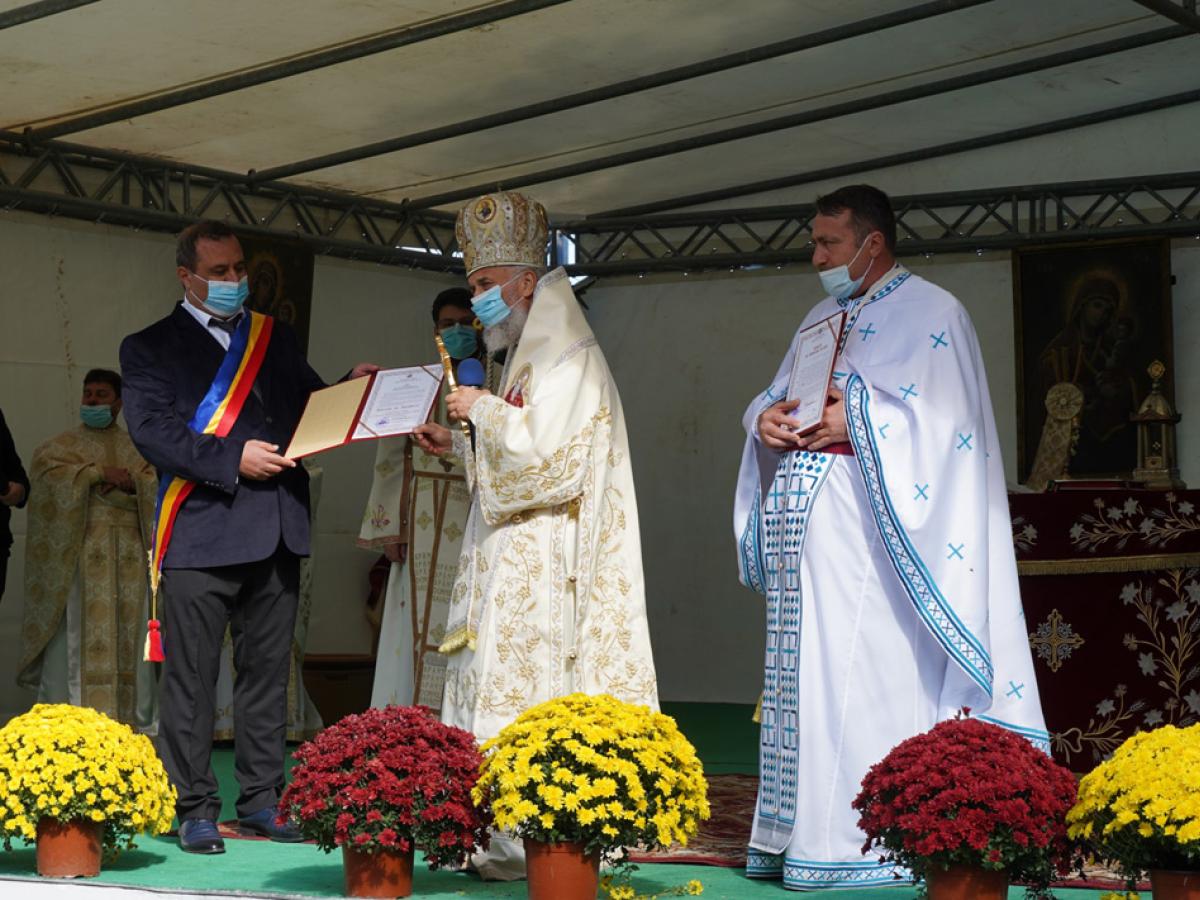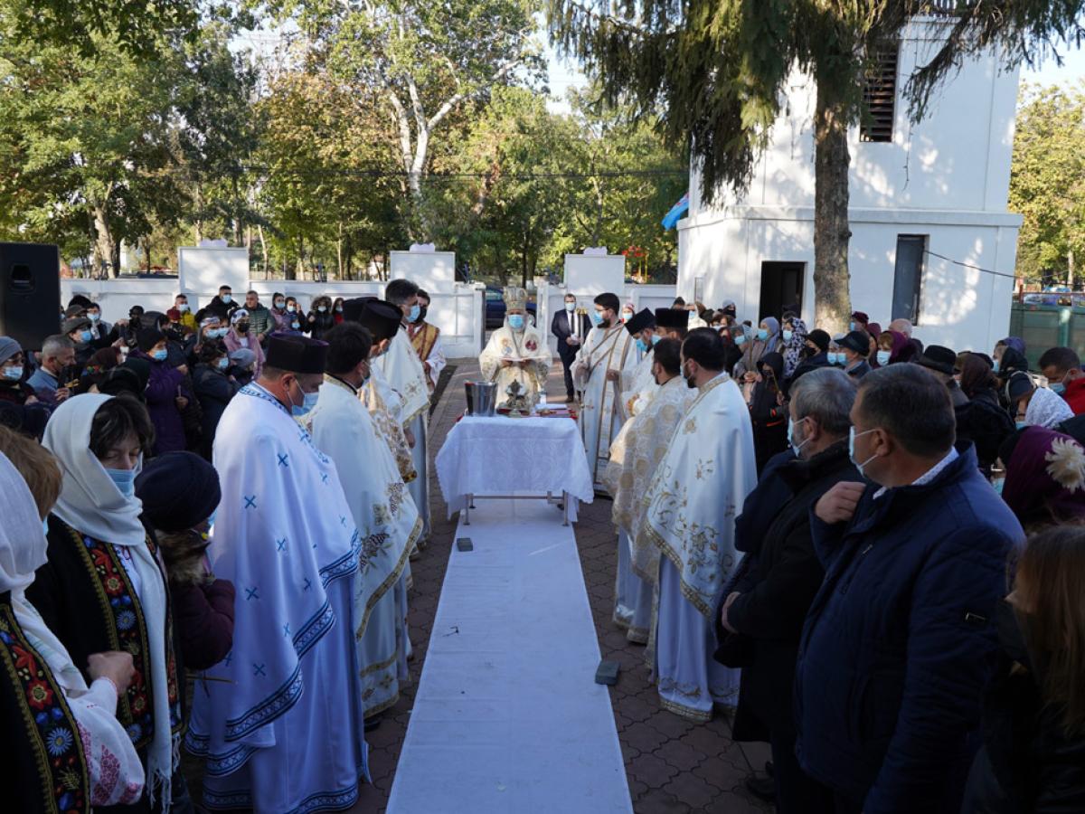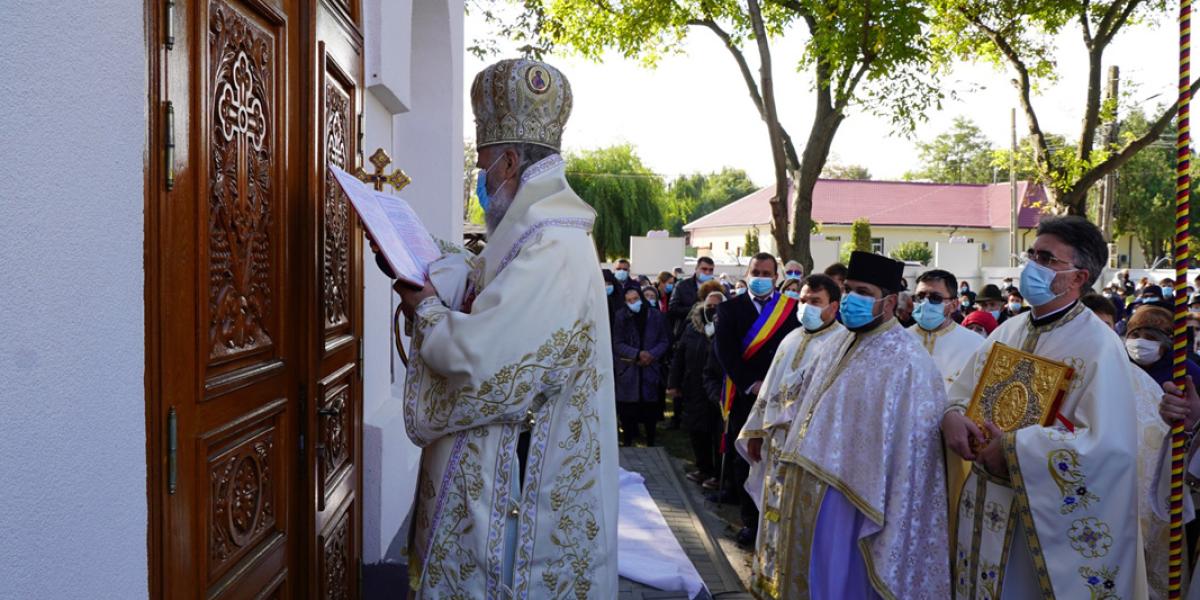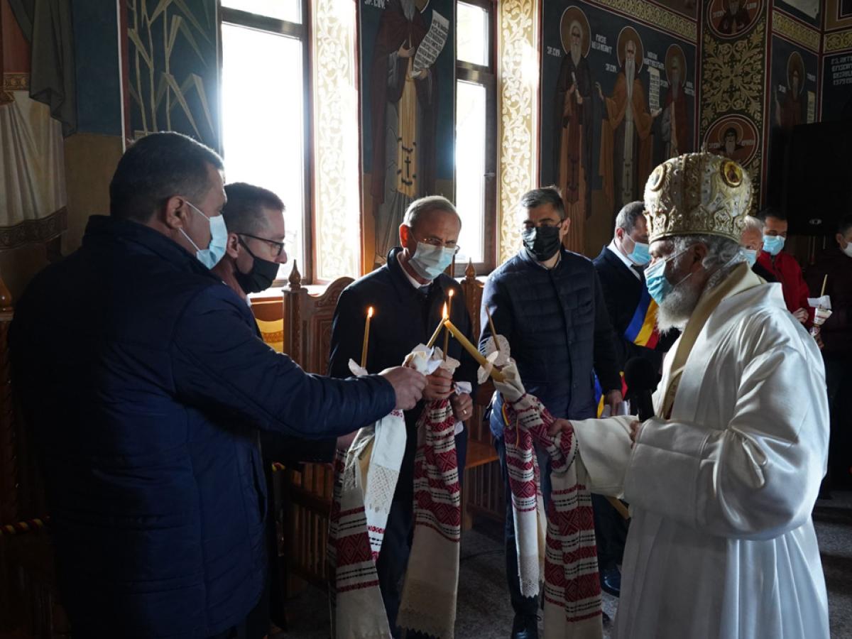 După slujba de sfințire a bisericii, ierarhul a săvârșit Sfânta Liturghie pe un podium amenajat în parcul din apropierea sfântului lăcaș, în prezența autorităților, credincioșilor și a elevilor de la școala din localitate, îmbrăcați în frumoase costume tradiționale românești. Pentru implicarea în lucrările de construcție și de amenajare a lăcașului, ierarhul i-a acordat preotului paroh Nicu Balaban rangul de iconom, iar cei care au sprijinit aceste lucrări, inclusiv primarul din localitate, au primit Diplomă de vrednicie.