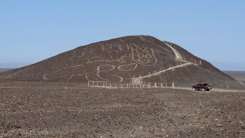 Nisipurile din zona de sud a Peru, gravate cu secole în urmă, cu geoglife ale unei colibri, a unei maimuţe, a unei orci au dezvăluit acum forma unei pisici enorme.