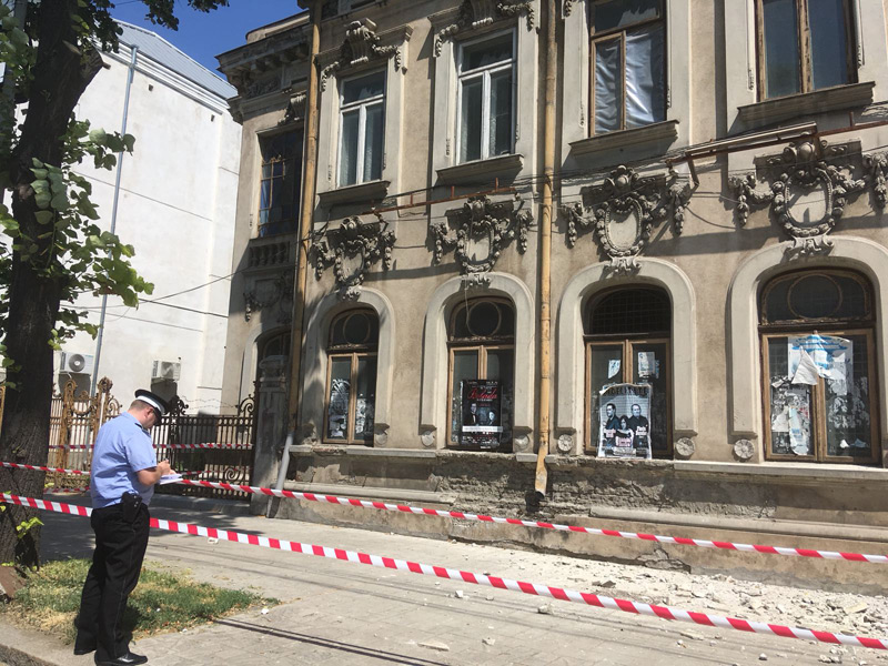 La fel cum se întâmplă de ceva vreme pe Str. Mihai Eminescu, unde mai multe imobile cu o arhitectură superbă, printre care şi fostul CEC sau fostul Hotel Pescăruş, se dezintegrează de la o zi la alta sub privirile neputincioase ale autorităţilor, şi în Piaţa Traian o clădire începe să cadă, bucată cu bucată, pe caldarâm, existând riscul să provoace un incident grav. Este vorba despre fostul sediu al Sindicatelor, situat între Muzeul Brăilei şi restaurantul Carol. Zilele trecute, o porţiune a faţadei a căzut pe trotuar şi, în continuare, alte bucăţi de moloz ar putea să cadă în orice moment. Pentru ca pietonii să fie protejaţi, Poliţia Locală a luat măsura împrejmuirii zonei cu o bandă de delimitare. De asemenea, proprietarul imobilului a fost amendat cu suma de 200 lei şi somat să înceapă urgent să reabiliteze faţada degradată. Conform Poliţiei Locale, clădirea îi aparţine în prezent unei femei în vârstă de 60 de ani, domiciliată în Bucureşti. Aceasta a mai fost somată şi amendată şi în anii trecuţi, pentru neîntreţinerea faţadei respective.