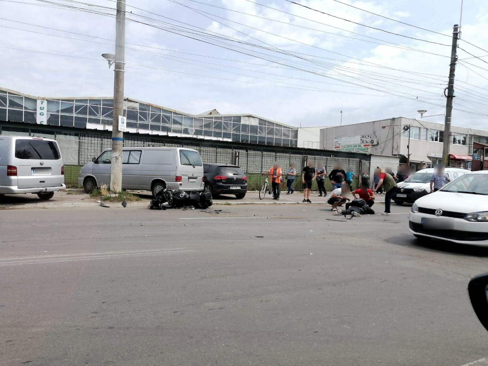 Accident rutier pe Şoseaua Râmnicu Sărat, în faţa centrului comercial TUG Center. Un motociclist a fost aruncat pe asfalt în urma impactului cu o autoutilitară. Bărbatul prezenta leziuni în zona feţei, potrivit martorilor care ne-au transmis fotografii de la faţa locului. Poliţiştii fac cercetări pentru a stabili cum s-a produs accidentul şi cine se face vinovat. Motociclistul a fost preluat de ambulanţă şi transportat la spital. Vom reveni.