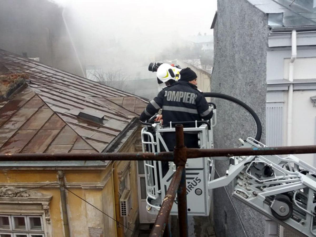 Un puternic incendiu a izbucnit, ieri după-amiază, la mansarda unei clădiri situate pe strada Roşie, în Centrul Vechi al municipiului, locul unde pe vremuri erau renumitele bordeluri ale Brăilei. Imobilul aparţine Serviciului de Utilitate Publică de Administrare a Fondului Locativ şi Cimitirelor (SUPAFLC), iar mansarda era locuită, după cum ne-au anunţat pompierii. Din fericire, focul nu a făcut victime. Pagubele au fost, însă, considerabile.