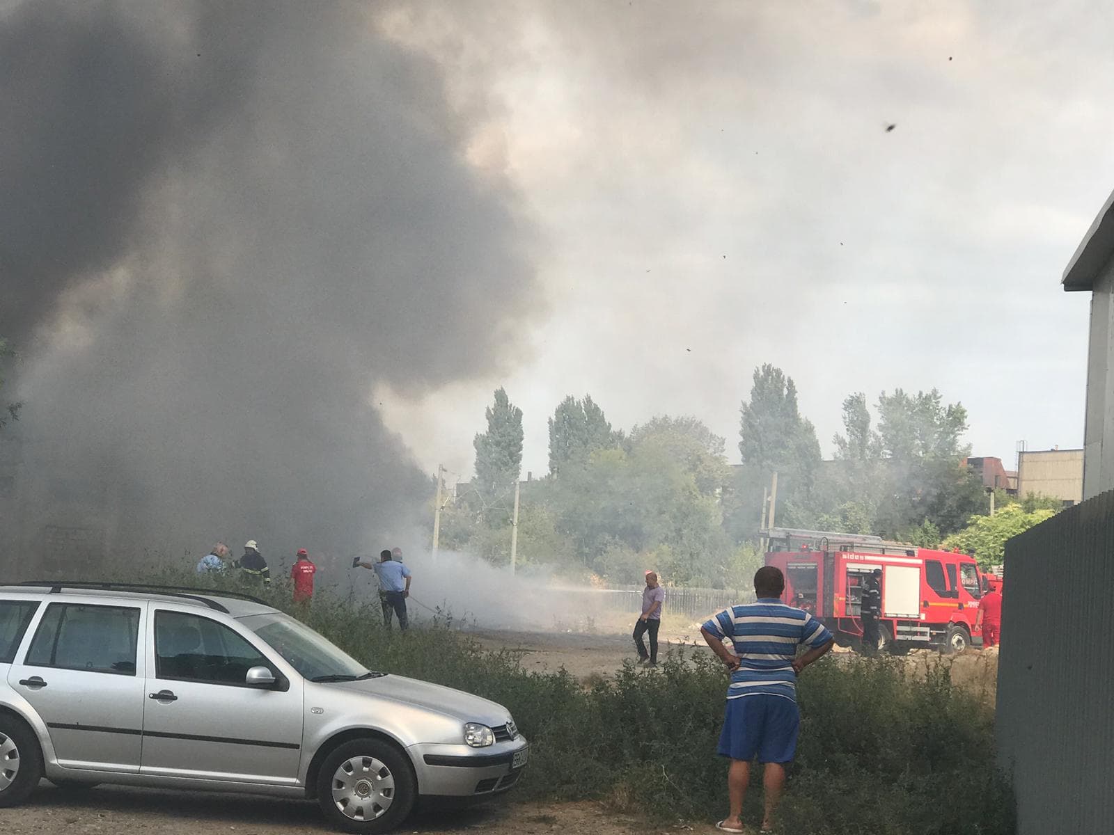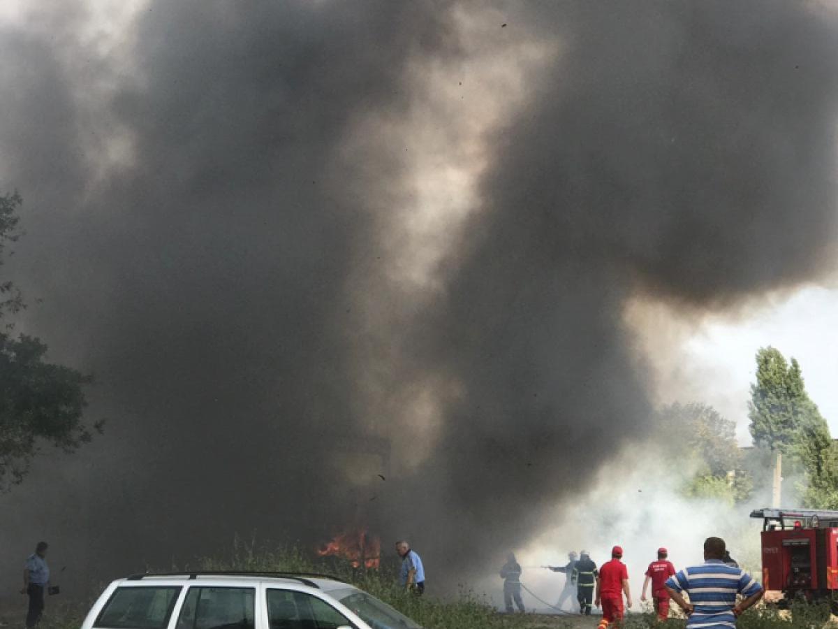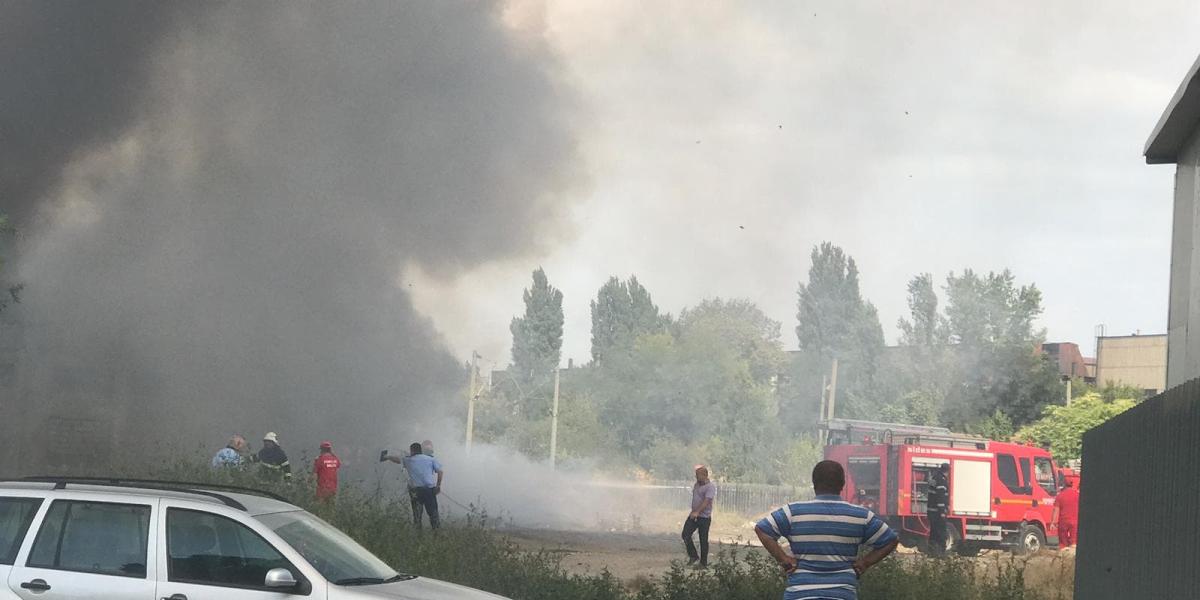 UPDATE: Incendiul a fost lichidat în jurul orei 14:40. Cauza probabilă a izbucnirii flăcărilor ar fi foc deschis în spațiu închis. Au ars bunurile - masă și pat improvizate, haine - din interiorul fostului punct termic, dar și autoturismele abandonate în zonă. Nu s-au înregistrat victime.