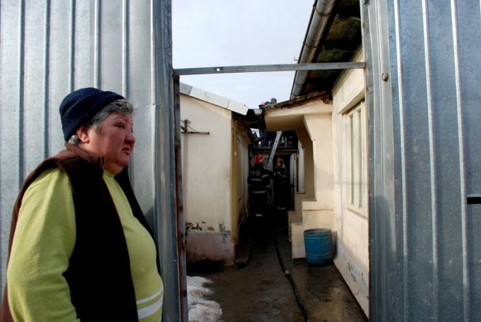 "Vecinii din spate au dat foc iar. E a doua oara când porneşte un incendiu de la ei. Ce mă fac eu acum? Sunt singură, barbatul mi-a murit. De unde bani sa îmi repar casa?", se tânguia Mioara I.