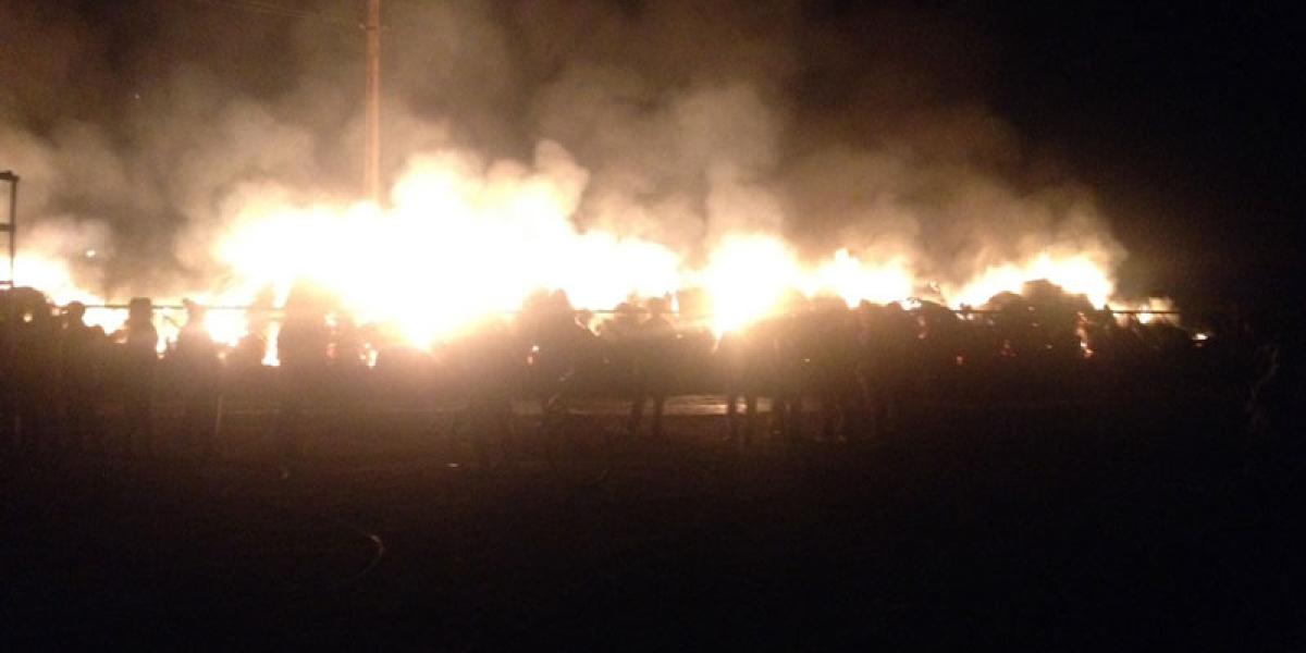 • o familie din localitate a rămas fără câteva sute de baloţi de lucernă după ce persoane deocamdată neidentificate au pus foc intenţionat • vâlvătaia a fost foarte puternică, însă intevenţia pompierilor militari şi a voluntarilor din comună a împiedicat extinderea focului către casele învecinate • Poliţia a demarat o anchetă, iar păgubaşii speră ca autorii să fie prinşi