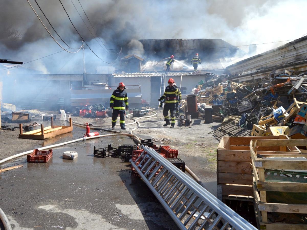 * pentru stingerea focului care mistuia un depozit de legume-fructe, ISU a deplasat la fața locului nu mai puțin de opt autospeciale de stingere cu apă și spumă * a fost nevoie și de sprijinul CUP ”Dunărea” și Seroplant, care au sărit în ajutorul pompierilor cu două cisterne de 5.000 litri capacitate, respectiv o cisternă de 6.000 litri * totodată, CUP ”Dunărea” a mărit presiunea în rețeaua de hidranți stradali din zona intervenției * incendiul a pornit de la un foc lăsat nesupravegheat de cineva care a vrut să scape de niște ambalaje de carton * în final, focul s-a extins pe acoperișurile a două depozite alăturate, pe o suprafață totală de circa 2.000 mp * un bărbat de 50 de ani a suferit arsuri la nivelul feței și membrelor superioare