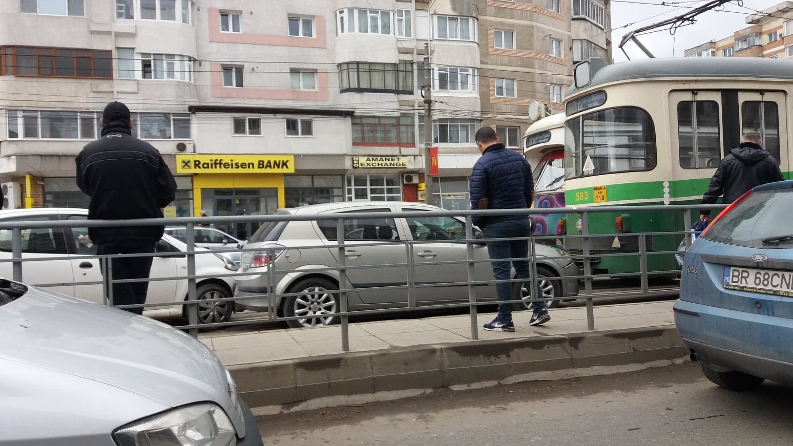Un vatman (59 de ani, din Brăila) care se pregătea să plece din stație a dat puțin cu spatele lovind mașinile aflate în urma tramvaiului, proiectându-le una în alta. În urma impactului, cea de a doua mașină a ajuns pe contrasens, blocând și cealaltă linie.