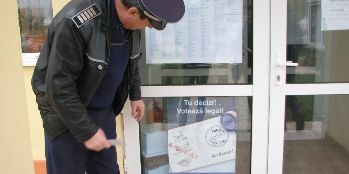 * polițiștii au primit patru sesizări cu privire la contravenții sau infracțiuni privind alegerile electorale, iar două s-au confirmat * la Romanu, președintele unei secții a plecat cu urna mobilă, iar pe un imobil de pe șoseaua Focșani erau afișate mijloace de propagandă electorală