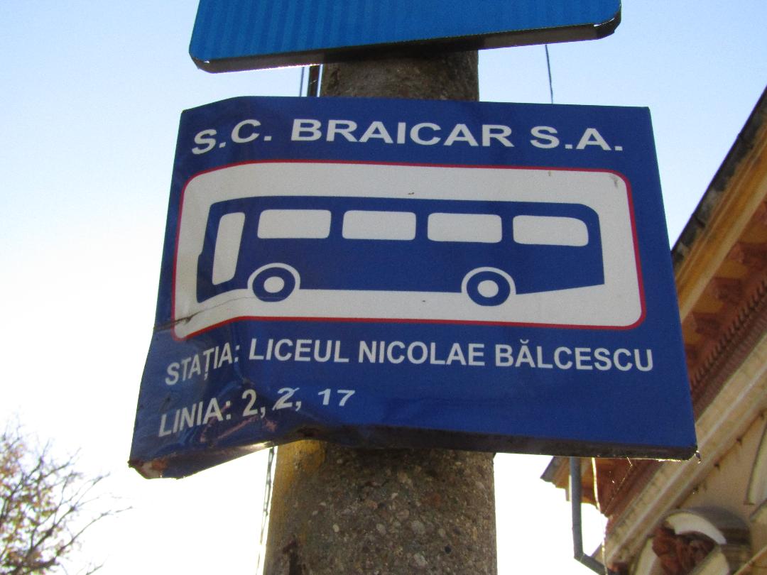 Povestea indicatoarelor din stațiile Braicar este plină cu diverse surprize, unele bune, altele nedorite. Acum, când toată Brăila este un șantier, s-a dispus ca stația “Liceul Nicolae Bălcescu” de pe Bdul. Al. I. Cuza (dinspre Calea Galați) momentan să nu fie funcțională, însă la fața locului nu este făcută vreo precizare în acest sens. Aşa că aştepţi vreo 10 minute, uneori mai mult, să vină vreun autobuz 2 sau 17, spre Vidin şi: nimic! “Mergeţi 2-300 de metri mai în urmă, unde s-a mutat staţia”, te îndrumă un cetăţean care locuieşte chiar în dreptul staţiei. Asta dacă ai norocul ca acesta să iasă la poartă. Deci, hai mai departe, şi culmea, vezi că te-a depăşit chiar autobuzul necesar. Ce e de făcut: mai aştepţi încă “o tură”, până vine dinspre Piaţa Traian un alt 2 sau 17. Culmea însă: staţia mutată la 300 de metri, nu are nici o denumire, iar scrisul cu un creion marker, privind doar liniile care trec pe aici, abia se mai vede.