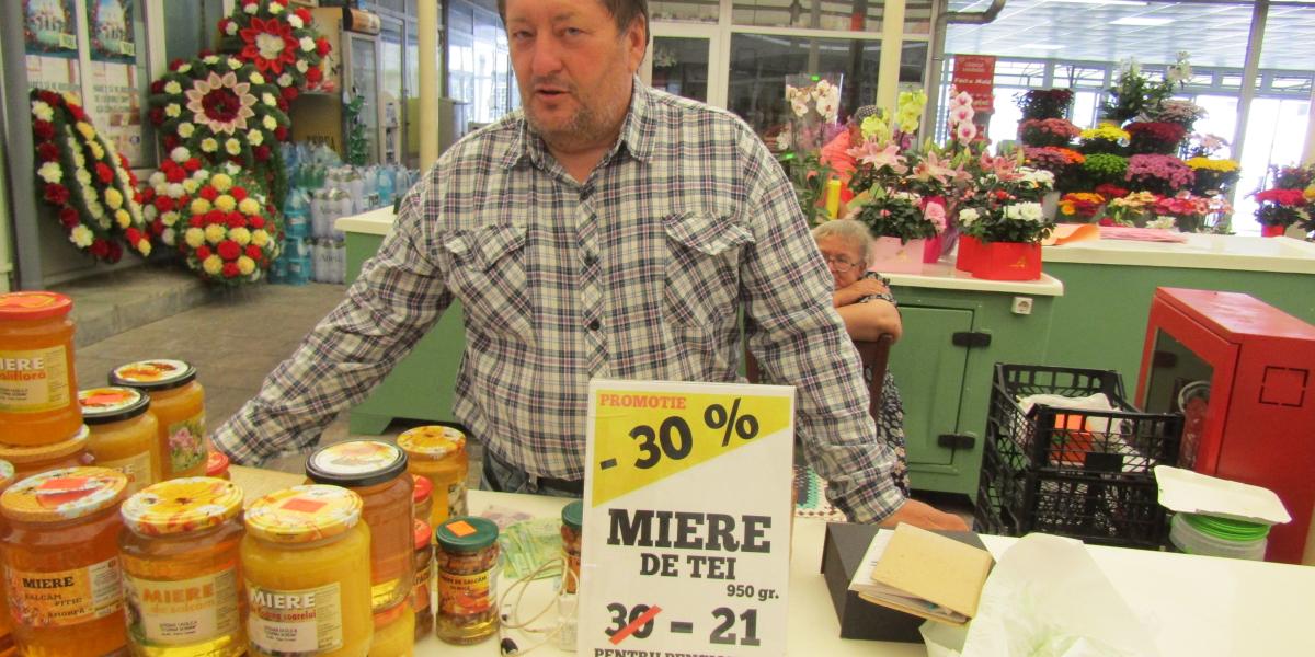 • un apicultor din Valea Cânepii, mulțumit de recolta bună de miere pe care a avut-o în actualul sezon, s-a gândit să scadă prețul cu 30% pentru pensionarii dar și alte persoane cu venituri reduse care se opresc la taraba lui