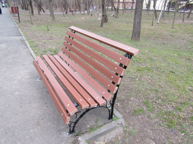 Băncile recent montate pe aleea principală a Parcului Monument sunt realizate dintr-un material compozit, rezistent la intemperii. Ergonomice, comode şi cu un design plăcut, ele au înlocuit alte bănci (nu foarte vechi, apte pentru odihnă, dar supuse intemperiilor). Deci, un lucru bun, civilizat şi modern, cu acest ultim model de bănci. Tot în acest parc s-au montat bănci noi, de un alt tip. Şi ele comode, însă, unele, cu un unghi diferit (chiar drept) al spătarelor.