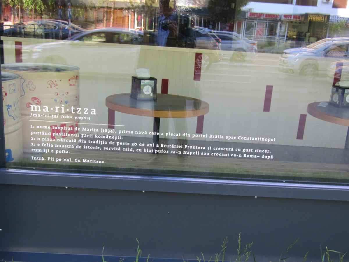 Brăila cunoaşte o permanentă schimbare a denumiriii unor spaţii comerciale şi a vitrinelor acestora. Lucrurile şi aspectele diferă în funcţie de gustul proprietarilor, priceperea și imaginaţia vitrinierilor sau a specialiştilor în design şi urbanism. Aşa se face că, recent, din iniţiativa unei cunoscute firme de panificaţie şi patiserie, pe Calea Călăraşilor a apărut o modernă pizzerie, cu numele ”Maritzza”. Un medalion cu imaginea stilizată prezintă o corabie cu aceeaşi denumire, scaunele (la modă, acum) semănând cu cele brâncuşiene de la “Masa tăcerii”, iar, inedit în Brăila, undeva pe vitrină, la nivel cu solul, se poate citi: ”Nume inspirat de Mariţa (1834), prima navă care a plecat din portul Brăila purtând pavilionul Ţării Româneşti, spre Constantinopol”.