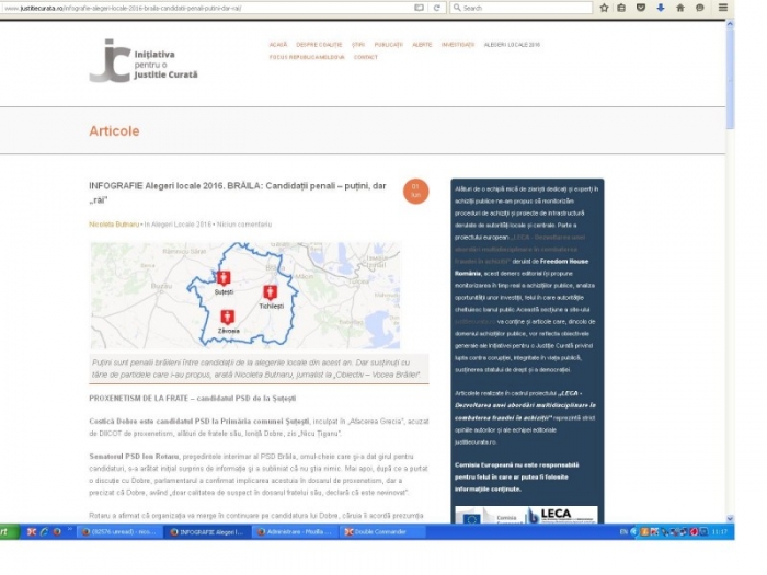 "Obiectiv- Vocea Brăilei" citat de Freedom House, în cadrul unui proiect intitulat "Justiţie Curată". Articolul se referă la candidaţii care au probleme penale din judeţ.