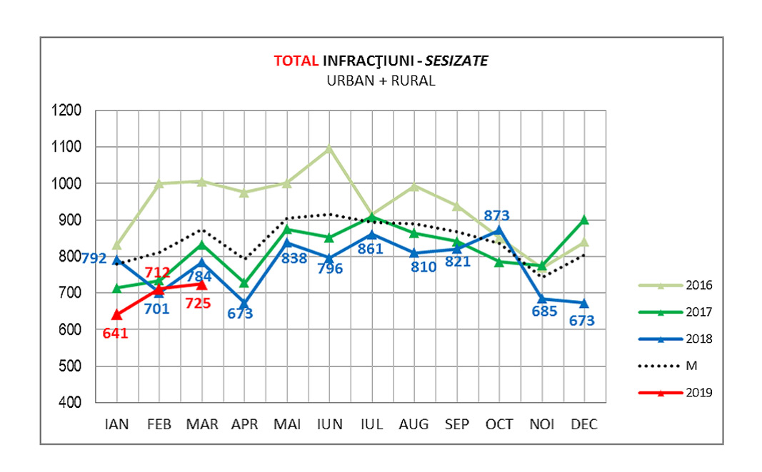 După cum arată poliţiştii, în cadrul activităţilor specifice domeniului ordine publică, au fost aplanate 284 de stări conflictuale, din care 202 intrafamiliale, au fost depistaţi 57 de minori lipsiţi de supraveghere, din care 45 predaţi familiilor şi 12 internaţi în centrele de ocrotire. În primul trimestru al anului 2019 au fost semnalate, prin serviciul 112, 4.671 de evenimente, dintre care 2.750 în mediul urban (58.87% din total) şi 1.921 în mediul rural (41,13% din total).