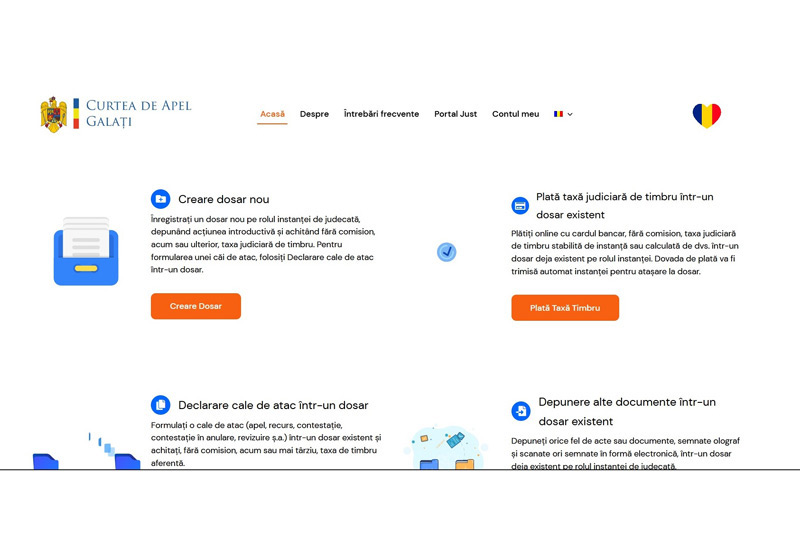Reprezentanții instanței reamintesc că, în cursul anului 2022, Curtea de Apel Galați a lansat noul său portal aflat la adresa de internet https://cagl.ro, care oferă acces părților, reprezentanților și publicului la principalele servicii