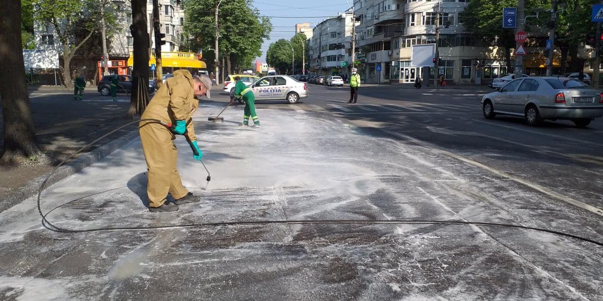 * aceștia au spălat carosabilul, cu detergenți, timp de mai bine de o oră, spre surprinderea celor care au asistat la întreaga operațiune * brăilenii se întrebau cum de se întâmplă o asemenea minune în orașul nostru * răspunsul e simplu: o firmă de construcții a scăpat un recipient cu var lavabil pe carosabil, iar curățenia s-a făcut pe cheltuiala ei * Primăria informează că și multe alte zone din municipiu au fost spălate cu detergent în municipiu, chiar dacă nu așa de insistent cum s-a întâmplat în respectiva intersecție * operațiunile de spălare se fac în contextul pandemiei de coronavirus