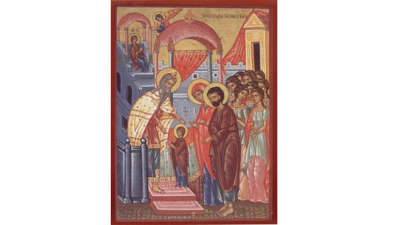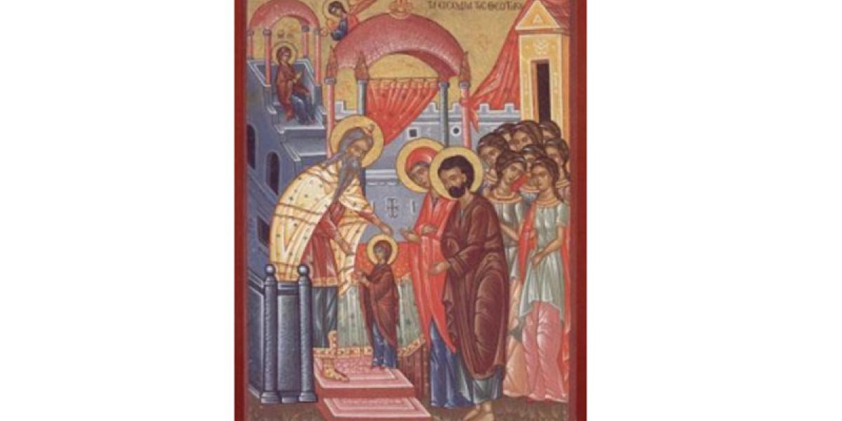 Marea sărbătoare a Intrării în Biserică a Maicii Domnului comemorează aducerea Fecioarei Maria la Templul din Ierusalim de către părinţii săi, Sfinţii Ioachim şi Ana, pe când era prunc. În acea zi, plin de duh sfânt, Arhiereul Zaharia a închinat-o pe Maica Domnului în Sfânta Sfintelor, locul cel mai sacru din Templu - unde numai arhiereul intra o singură dată pe an - spre bucuria părinţilor ei. Iar Fecioara Maria a vieţuit în Templul din Ierusalim vreme de 12 ani.