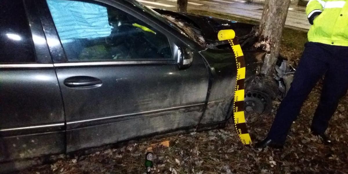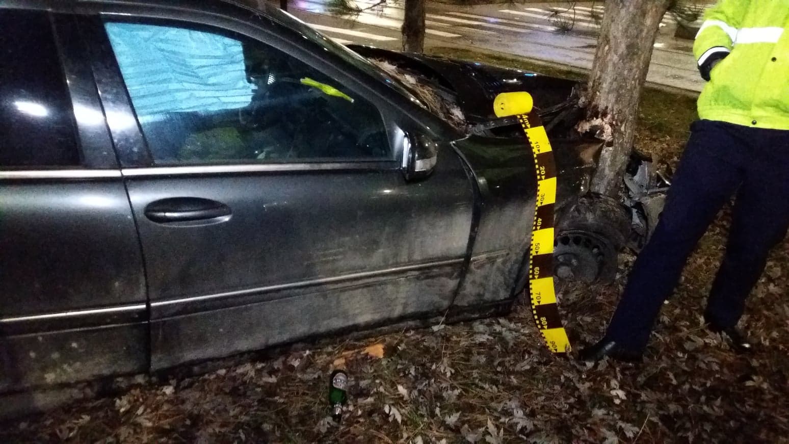 In noaptea de luni spre marti, soferul unui Mercedes care se deplasa pe Calea Calarasilor dinspre Viziru spre Primărie, nu a adaptat viteza la condițiile de carosabil umed, iar in Bariera Calarasilor a pierdut controlul volanului, a părăsit partea carosabila si s-a tamponat de doi copaci plantati in scuar.