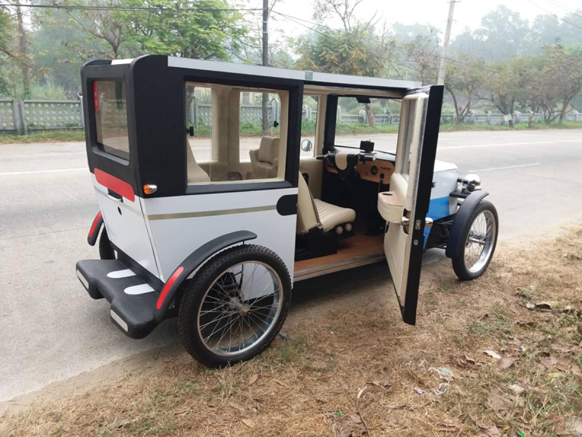 Pasionat de artă şi modelism, Valentin Ştefan - absolvent al Liceului de Artă „Hariclea Darclee” şi al Facultăţii de Arte din cadrul Universităţii „Al. I. Cuza” din Iaşi - a construit anul trecut, în Myanmar, velomobilul de familie, un vehicul cu propulsie electrică ce poate fi acţionat şi cu pedale. Maşinăria cu caroserie retro, specifică anilor 20, este nepoluantă şi sigură, purtând două persoane cu bagaje cu tot, cu viteza legală de 45 de km/h. Realizat în patru versiuni, vehiculul poate prinde chiar mai mult. A început proiectul Qlio Velo la vârsta de 13 ani, după ce, la numai 9 ani, obţinea prima medalie de aur la un concurs internaţional de artă. Despre pictorul brăilean care a inventat un vehicul unic în lume şi care a fost silit să meargă să-l construiască nu în România, ci în inima Asiei, citiţi în rândurile care urmează.