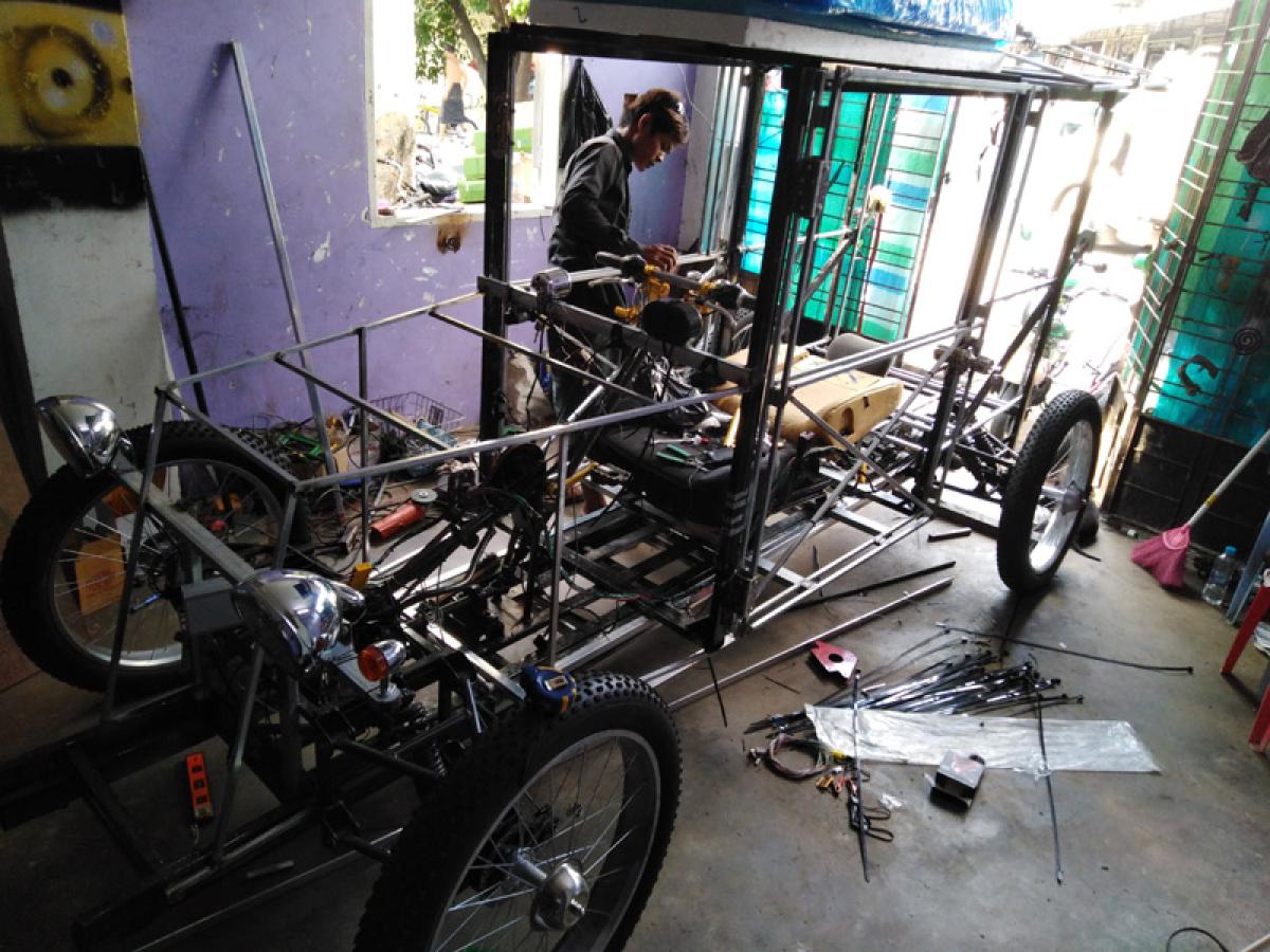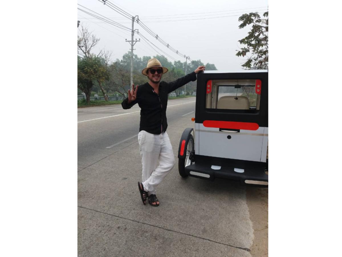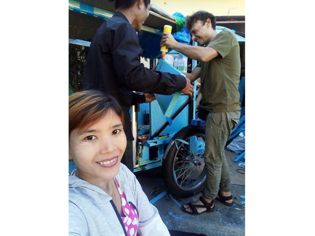 „Am plecat în Asia. Iniţial, am ajuns în Thailanda, însă acolo s-a dovedit a fi un «pom lăudat». Acolo, am întâlnit un ghid culinar din Myanmar, care a fost atras de idee. El mi-a sugerat să încerc şi în ţara lui. Prin urmare, după expirarea vizei în Thailanda, am plecat în Myanmar (Burma - n.r.). În cea de-a treia zi, în Yangon (fostă capitală a ţării, actual centru comercial), am găsit oameni binevoitori, în cadrul unui complex dedicat pieselor de biciclete şi motociclete. Printr-o minune, acesta se învecina cu un alt complex, cu materiale de construcţii, unelte şi tot ce este necesar pentru a construi o casă de la zero: Qlio Velo este alcătuit din componente de bicicletă, motocicletă, maşină şi casă!”, povesteşte brăileanul.