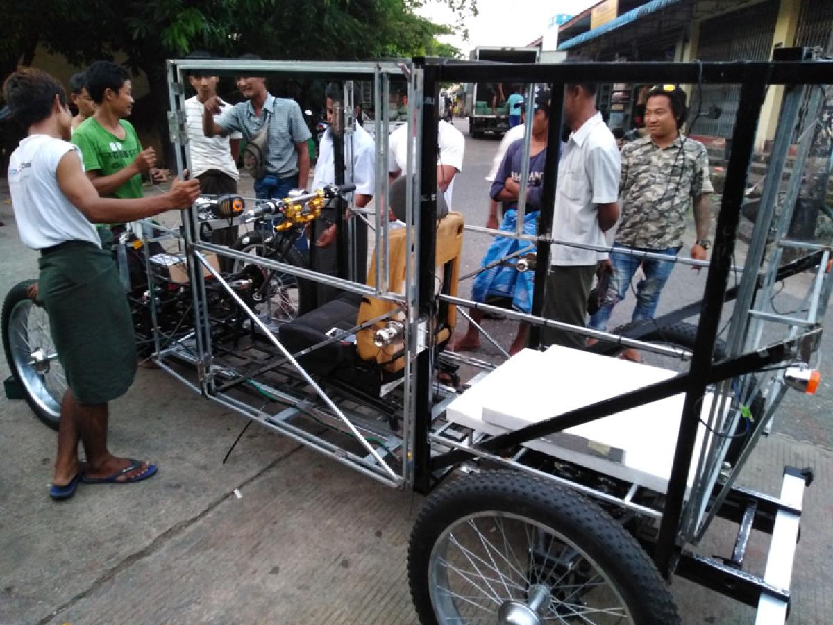 În Myanmar, artistul-inventator şi-a făcut doi colaboratori, un sudor şi un electrician, cu care se înţelegea prin „limbajul internaţional al semnelor”: ei nu ştiau engleză, românul nu pricepea burmeza! Iar problemele nu au întârziat să apară.