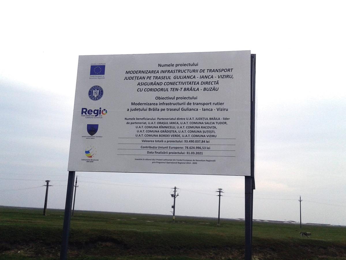 Concret, drumul ar fi trebuit modernizat și redat circulației până la 31 martie 2021, însă, în realitate, la ora actuală încă se circulă ca în Evul Mediu. Proiectul privind modernizarea infrastructurii de transport rutier a județului Brăila pe traseul Gulianca-Ianca-Viziru are, conform cifrelor pironite în pancarta de informare, o valoare totală de 93.490.037,84 lei, din care 78.624.996, 53 lei este contribuția Uniunii Europene. Cu acești bani este prevăzută reabilitarea a 61 de kilometri de drum, împărțiți în patru tronsoane, respectiv Gulianca-Racovița-Gradiștea, Șuțești-Ianca, Ianca - Bordei Verde și Bordei Verde - Viziru. Vorbim, practic, despre modernizarea întregului culoar cunoscut pe raza județului nostru drept „drumul mării” deoarece la ora actuală, până când noul pod peste Dunăre va fi pus în funcțiune, reprezintă principala rută folosită de turiștii din Moldova care se îndreaptă spre Litoral. Ultimul tronson din acest drum, cel dintre comuna Viziru și localitatea Mihai Bravu, de la granița cu județul Ialomița, a fost reabilitat în urmă cu mai bine de 10 ani, când Consiliul Județean era condus de Gheorghe Bunea Stancu. Între timp, tronsonul respectiv s-a uzat fizic, carosabilul având nevoie de o nouă reabilitare.