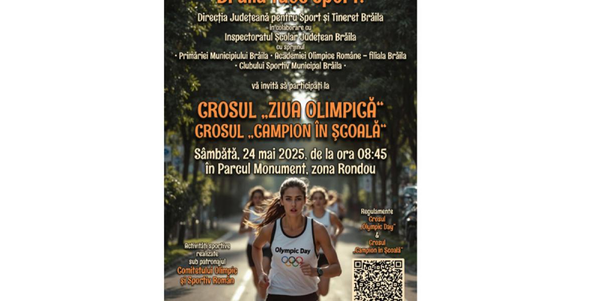 • brăilenii pot participa la crosurile “Campion în Școală” și “Ziua Olimpică” pe 24 mai 2025, începând cu ora 8:45