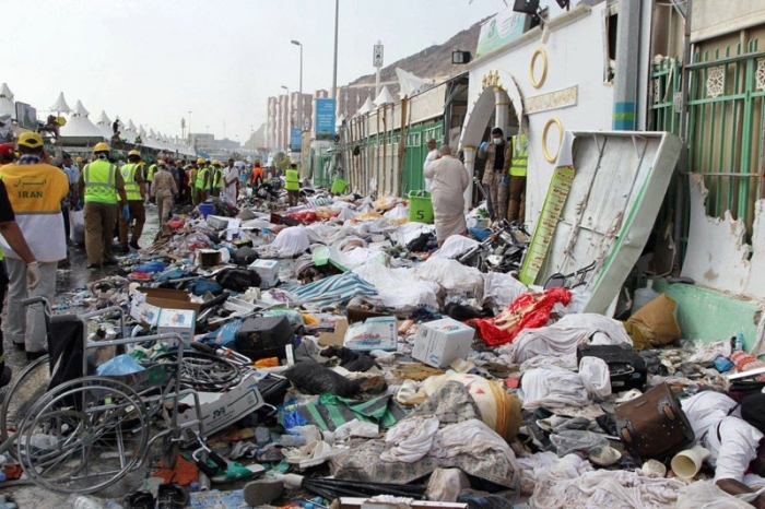 „Cred că iranienii au lucruri mai bune de făcut decât să exploateze politic o tragedie care a lovit oameni în timpul celor mai sacre ritualuri ale lor", a reacţionat ministrul de Externe saudit Adel al-Jubeir. „Nu vom ascunde nimic. Dacă au fost comise greşeli, cei care le-au comis vor fi făcuţi responsabili", a dat asigurări ministrul saudit, în faţa jurnaliştilor. El a precizat că Riadul „va prezenta faptele pe măsură ce ele vor fi cunoscute", şi le-a cerut liderilor iranieni să fie „mai înţelepţi" şi să „aştepte rezultatele anchetei".