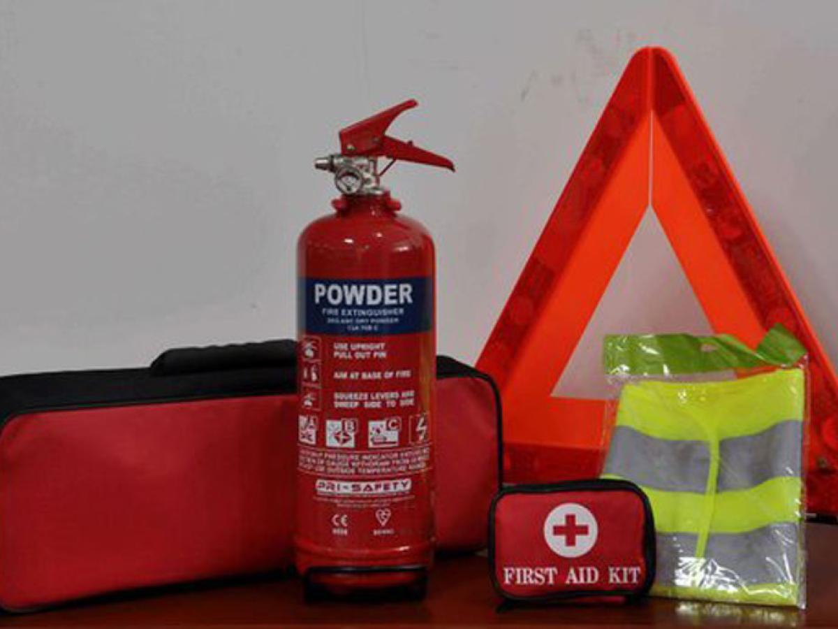 Conform Codului Rutier- art 8 „Pentru a fi conduse pe drumurile publice, fiecare autovehicul, tractor agricol sau forestier şi tramvai trebuie să fie dotat cu trusă medicală de prim ajutor, două triunghiuri reflectorizante şi un stingător de incendiu, omologate”. Conducerea unui autovehicul care nu este dotat cu trusa medicală, triunghiuri reflectorizante, stingător de incendii şi vestă pe drumurile publice atrage după sine o sancţiune de 4-5 puncte amendă.