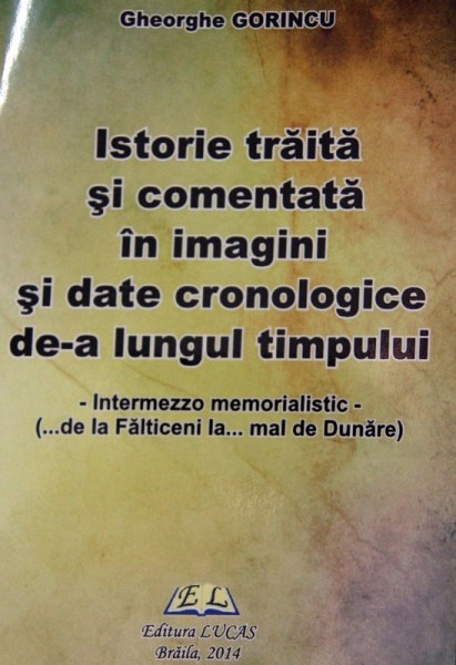 Un nou volum semnat de Gheorghe Gorincu este lansat astăzi, de la ora 17.00, la Biblioteca Judeţeană. Este vorba despre cartea "Istorie trăită şi comentată în imagini şi date cronologice de-a lungul timpului", un intermezzo memorialisic, de la Fălticeni la mal de Dunăre, tipărit la editura "Lucas" din Brăila. Comentatorii evenimentului sunt profesorii: Dumitru Anghel, Jenică Chiriac, Viorel Coman şi Constantin Toader, iar moderator Claudiu Brăileanu, şef serviciu în cadrul Bibliotecii.