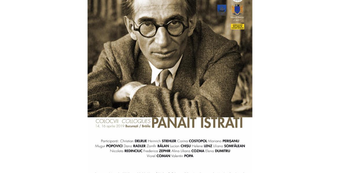Marţi, 16 aprilie 2019, între orele 9.30-12.30 şi 16.00-18.00, la Casa Memorială “Panait Istrati” din Grădina Publică se vor desfăşura comunicările colocviului “Panait Istrati”. Vor prezenta comunicări istorici şi critici literari, iubitori ai literaturii lui Panait Istrati, din Franţa, Austria şi România.