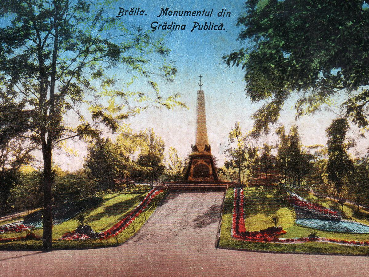 "Deasupra acestui furnicar de muncitori, pe dealul culcat de-a lungul Dunării, se ridică orașul cu străzile lui largi și drepte, cu grădini frumoase și clădiri mărețe care-i dau înfățișarea unei capitale apusene. Ca la o bătaie de pușcă, cum ieși pe Bariera dinspre miazăzi, dai de Parcul Monumentului, o adevărată pădure în mijlocul căreia se înalță o movilă între patru tunuri, o piramidă de piatră ale cărei inscripții amintesc că, la 1828, fortăreața Brăila a fost luată de sub stăpânirea turcilor și redată, pentru totdeauna, României".