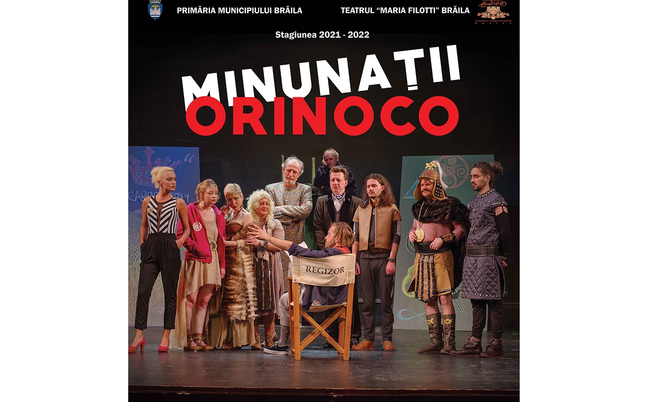 Sâmbătă, 22 aprilie, Sala Mare, ora 18.00 - “Minunații Orinoco”, text și regie Mimi Brănescu. În acest spectacol, acțiunea este concentrată în jurul aventurilor și întâmplărilor neobișnuite din timpul repetițiilor unui spectacol de teatru, într-o cheie comică. În fiecare scenă este prezent regizorul, care “explică“ spectatorilor agitația care se petrece în culise în timpul spectacolului, iar la sfârșit povestește chinul tragi-comic de creație prin care trec realizatorii. Însă, în final, nimic nu mai pare să funcționeze cum fusese prevăzut! Grație comicului său irezistibil, piesa “Minunații Orinoco” aduce în atenția spectatorilor răspunsul la întrebarea: Ce se întâmplă în culisele unui spectacol? Ce probleme personale au actorii? Dar regizorul? Cum reușesc ei să facă față unui HAOS organizat?