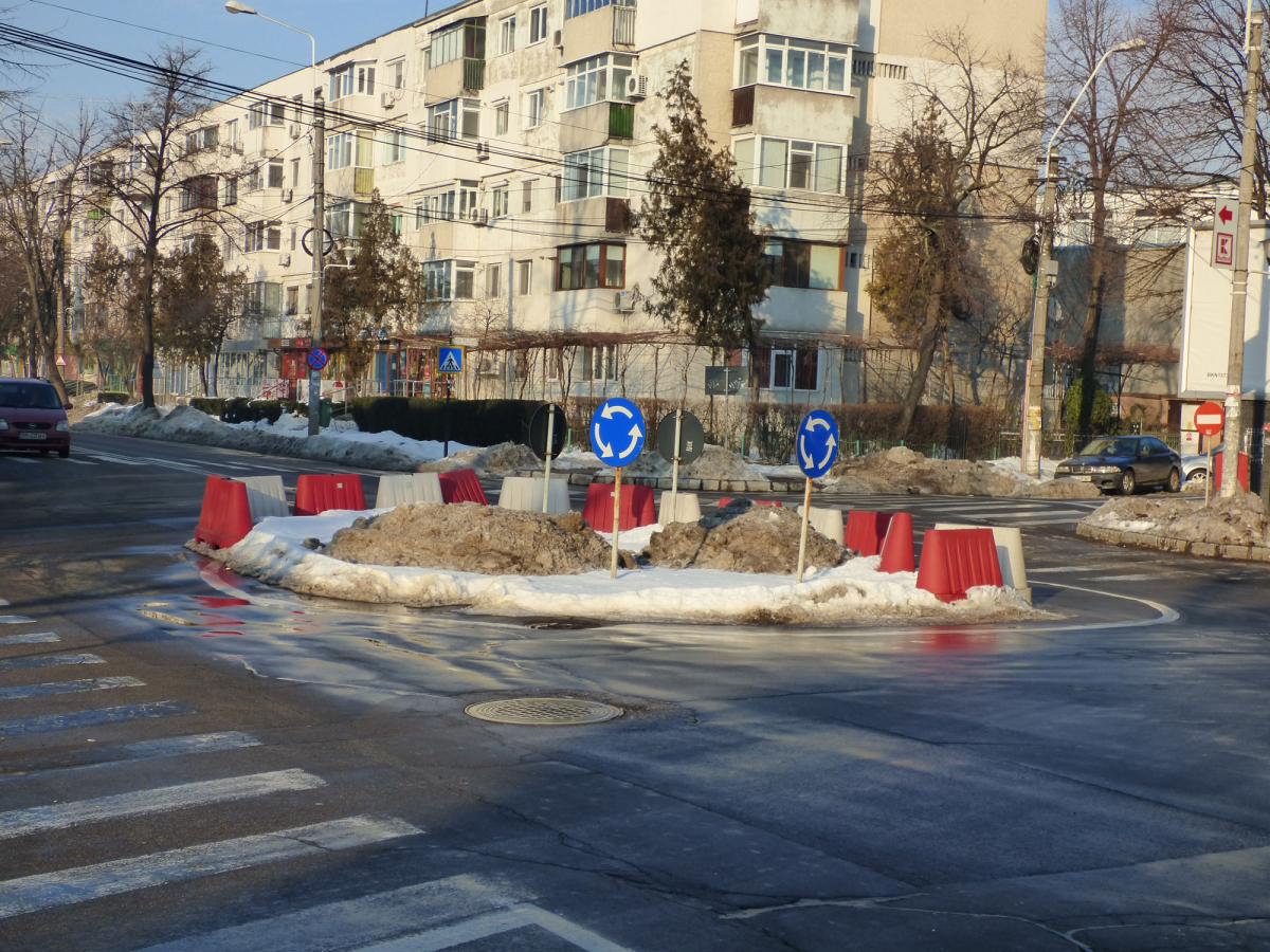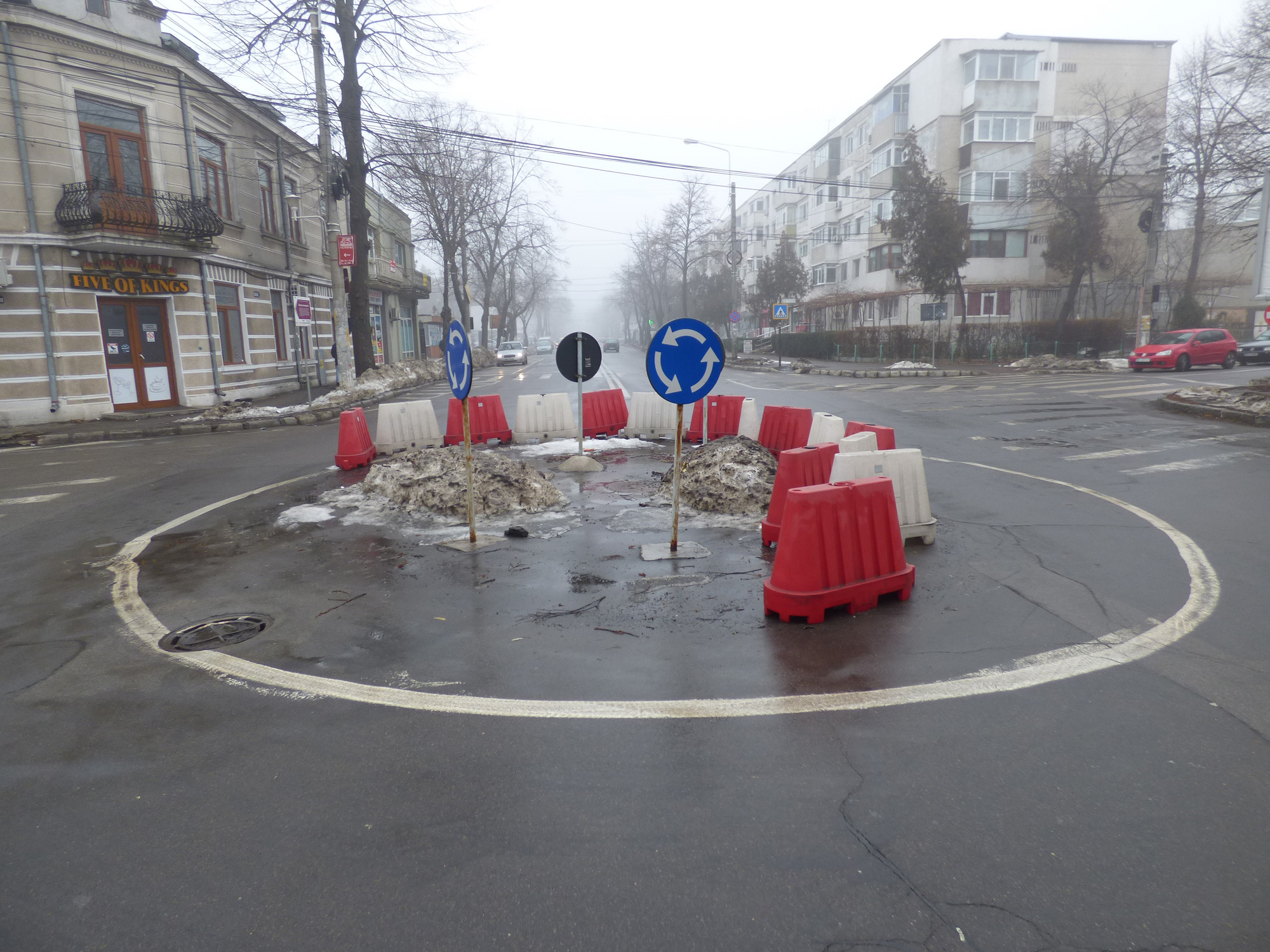 Cu totul alta este situaţia, însă, pe Calea Galaţi, colţ cu Bdul. Cuza, sau în intersecţia străzii Mircea Mălăeru cu şoseaua dig spre Galaţi, la Cărămidărie. Este adevărat că aceste giratorii sunt doar provizoriu realizate, din acele recipiente de material plastic, care între timp au fost stâlcite sub roţile maşinilor ori mutate în interiorul marcajului sub formă de cerc.