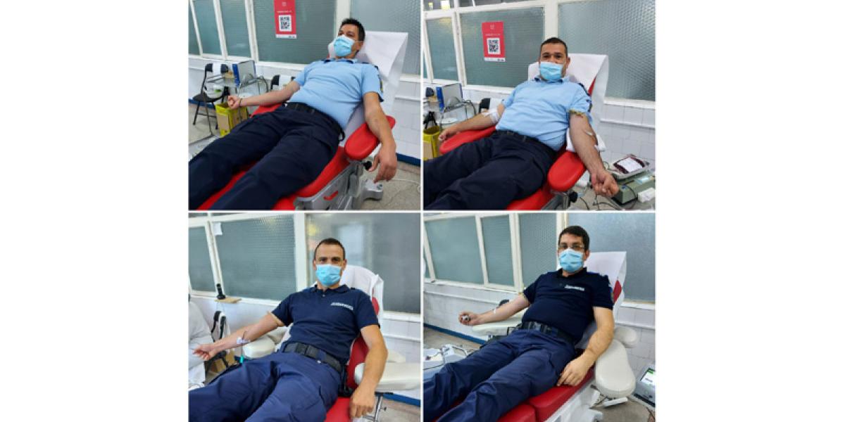 * miercuri, nouă jandarmi au donat sânge, în cadrul campaniei naționale demarată de Jandarmeria Română, intitulată “Donează sânge! Salvează o viață!”