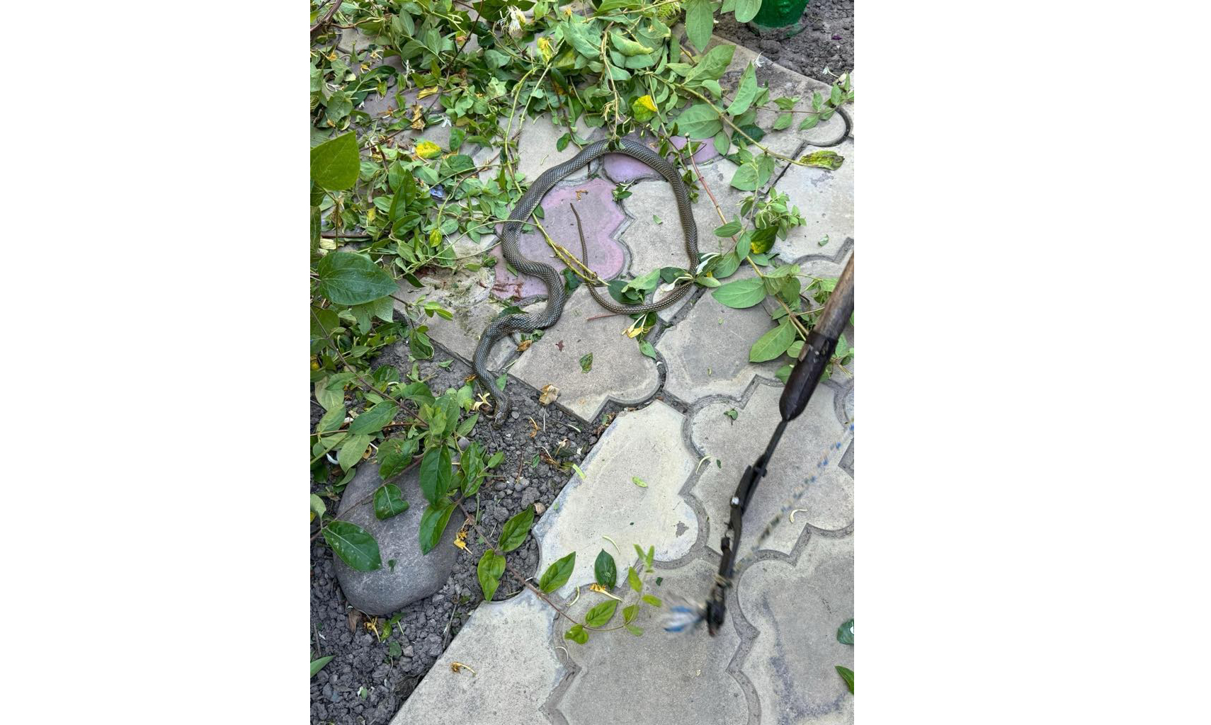 Propietara unui imobil din Cartierul Chercea municipiul Brăila a observat un șarpe în bolta viței de vie din curtea proprie.