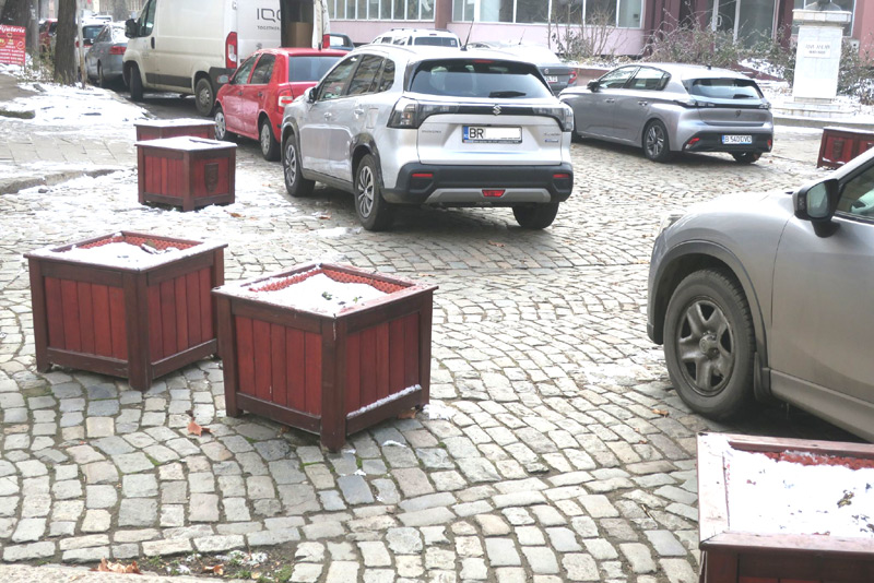 Amplasate în urmă cu câțiva ani la intersecțiile străzii pietonale Mihai Eminescu (fosta Regală) cu străzile Petru Maior, Mihail Sebastian și Ana Aslan, jardinierele care aveau scopul de a-i descuraja pe șoferi să mai parcheze în respectivele intersecții nu și-au dovedit în niciun fel utilitatea. Doar la început, timp de câteva săptămâni, au ținut șoferii la distanță, apoi haosul rutier și pietonal a revenit, situația fiind chiar mai rea decât înainte, pentru că toți posesorii de mașini au început să parcheze lângă jardinierele masive, încurcând și mai mult circulația pe cele trei străzi care se întrepătrund cu pietonala Mihai Eminescu. În timp, lucrurile au scăpat și mai mult de sub control, după ce jardinierele masive au început să fie mutate de pe poziție de administratorii spațiilor comerciale ce țineau neapărat să intre cu mașinile cu mărfuri până în dreptul magazinelor lor. În alte orașe, pe străzile pietonale circulația autovehiculelor este strict interzisă pe tot parcursul zilei, aprovizionarea magazinelor făcându-se cu cărucioare speciale, cu care se cară marfa de la mașinile oprite la distanță, în zonele special desemnate, până la spațiile comerciale. Nu e cazul, însă, și la Brăila, unde puținii posesori de magazine care încă își mai desfășoară activitatea pe fosta Regală nici nu concep să își care mărfurile cu cărucioare, considerând că este dreptul lor inviolabil ca mașinile de aprovizionare să intre până în fața spațiului comercial, la orice oră din zi... Așa se face, deci, că jardinierele care, teoretic, ar fi trebuit să facă ordine pe singura stradă pietonală a Brăilei se află în prezent într-o devălmășie totală, ocupând degeaba spațiile din intersecțiile respective, unde oricum toți șoferii ignoră cu desăvârșire indicatoarele ”Staționarea Interzisă” existente la fața locului. Din când în când, Poliția Locală mai aplică niște amenzi celor prinși că parchează în intersecțiile în cauză, însă imediat cum dispar agenții din zonă mașinile reapar, parcă mai multe decât înainte.