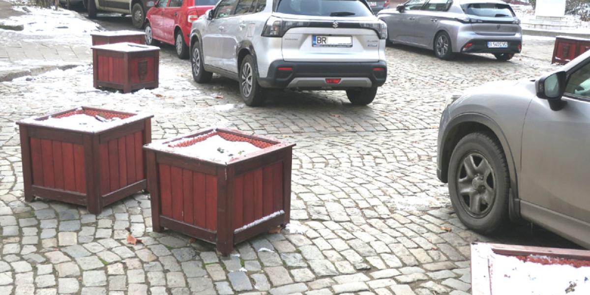 • amplasate în urmă cu câțiva ani pentru a-i descuraja pe șoferi să mai parcheze în intersecțiile străzii Mihai Eminescu cu străzile Petru Maior, Mihail Sebastian, respectiv Ana Aslan, jardinierele masive nu și-au dovedit deloc utilitatea • mașinile au fost parcate în continuare, lângă ele, încurcând și mai mult circulația, iar după un timp proprietarii de spații comerciale de pe strada pietonală au început să le mute pentru a putea intra cu mașinile de mărfuri pe strada pietonală • la ora actuală, jardinierele mai mult încurcă decât ajută la ceva...