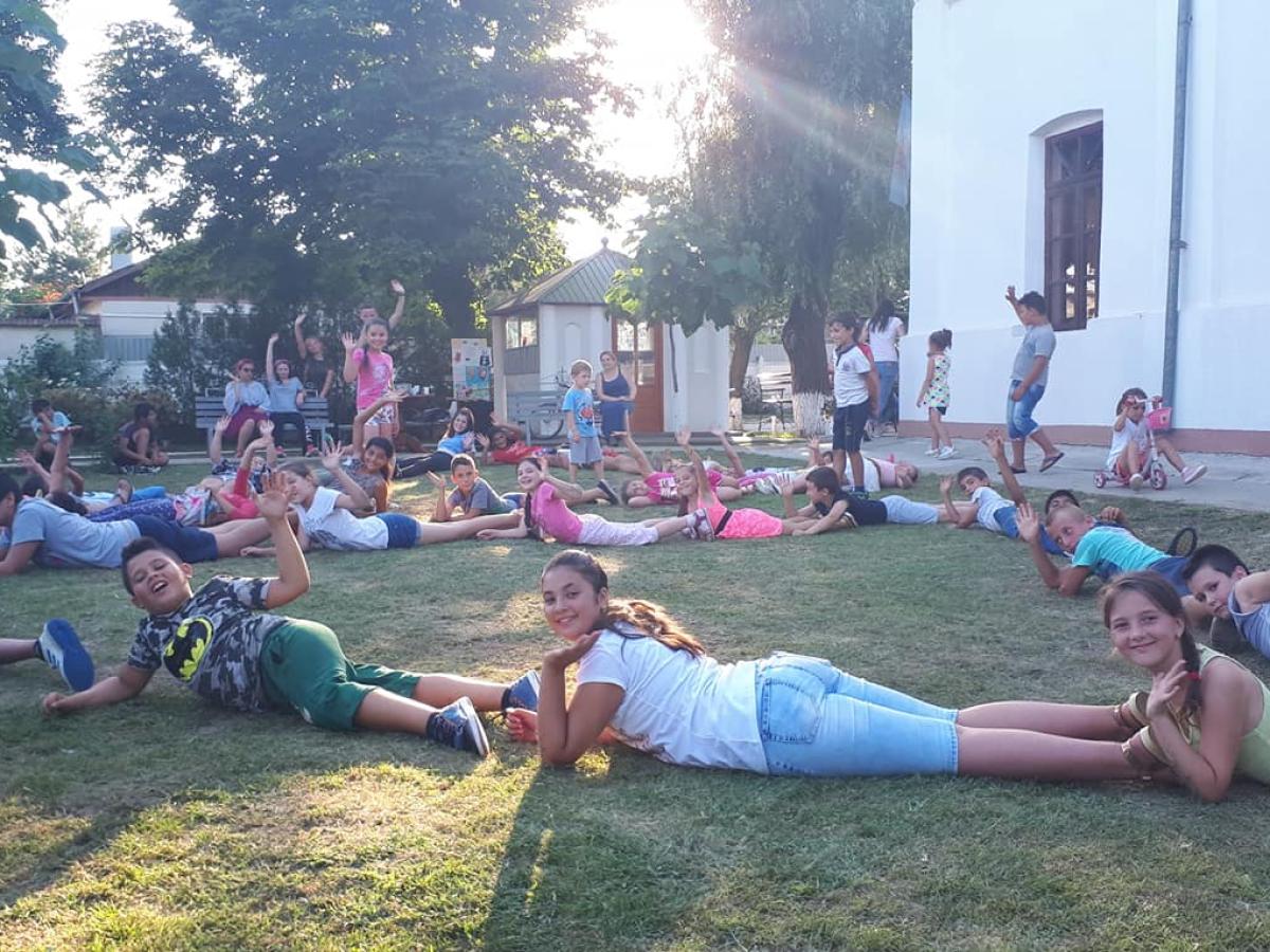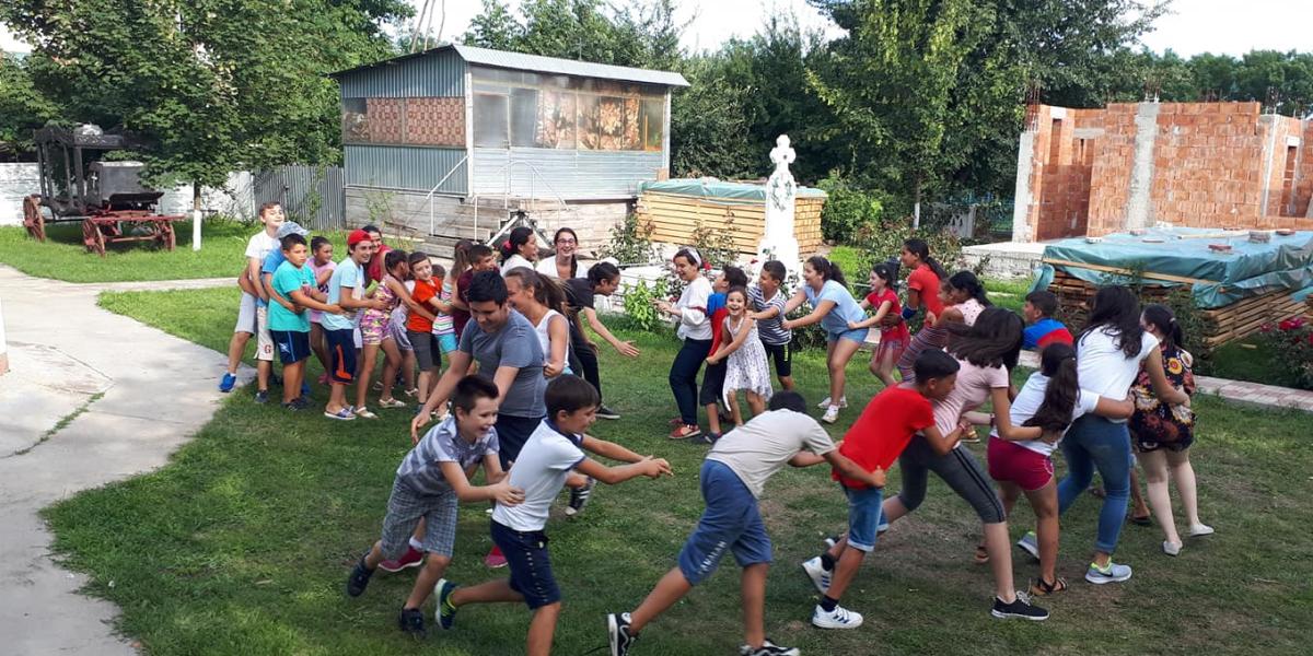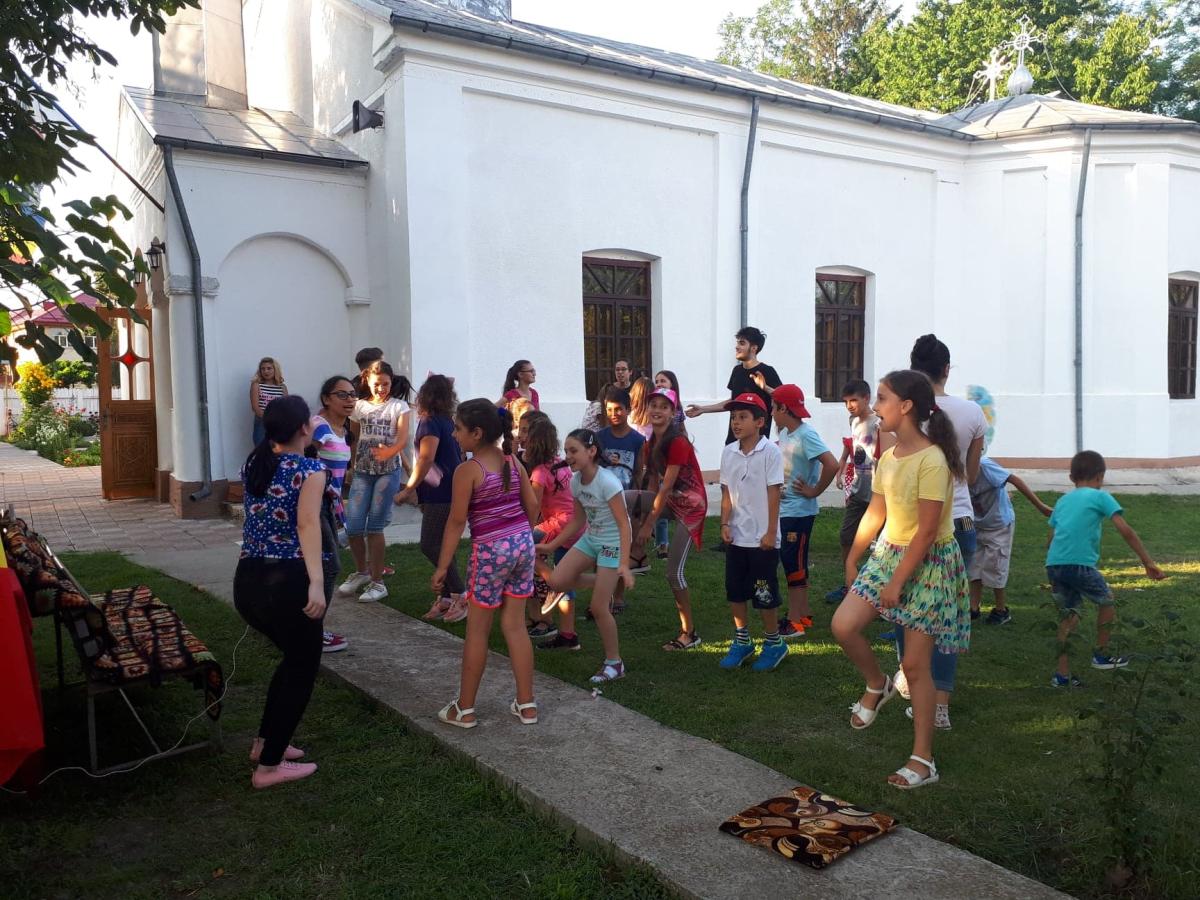 * zeci de copii din parohia „Sf. Ioan Botezătorul” din Ianca se strâng, săptămânal, în curtea locașului pentru a se juca * activitatea face parte dintr-un program menit să-i provoace pe micuți la joacă în aer liber și să renunțe la jocurile pe calculator și telefon * Părintele Cristian, alături de animatori, îi învață pe copii jocuri noi, la fiecare întâlnire * animatorii sunt adolescenți din municipiu care au ajuns în grupul catehetic-misionar format de Părintele Bănică Simeon, inspector eparhial pentru catehizare și activități cu tineret * în această săptămână, la Ianca are loc tabăra creștină de vară, în cadrul căreia copiii participă la ateliere de creație, merg la ștrandul din localitate, vizitează herghelia și vizionează filme * la finalul verii, 20 dintre ei vor merge în tabără la Bisoca, alături de Părintele Cristian