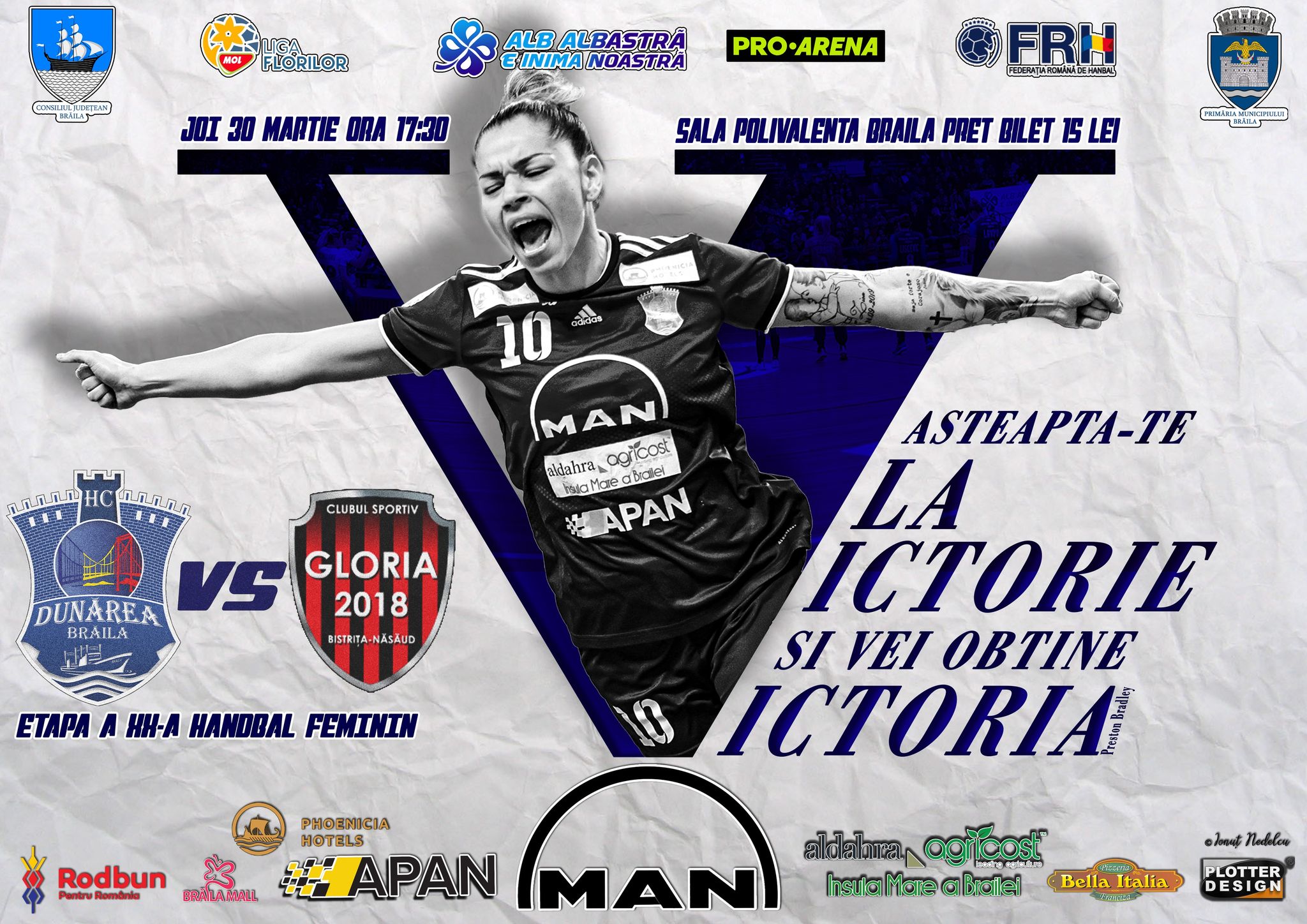 * HC Dunărea o va întâlni pe Gloria Bistrița Năsăud * meciul din etapa a 20-a a Ligii Florilor începe la ora 17.30 și este transmis de Pro Arena * “Așteptăm a zecea victorie consecutivă pentru Brăila”, a declarat președintele HC Dunărea Brăila, Adrian Manole