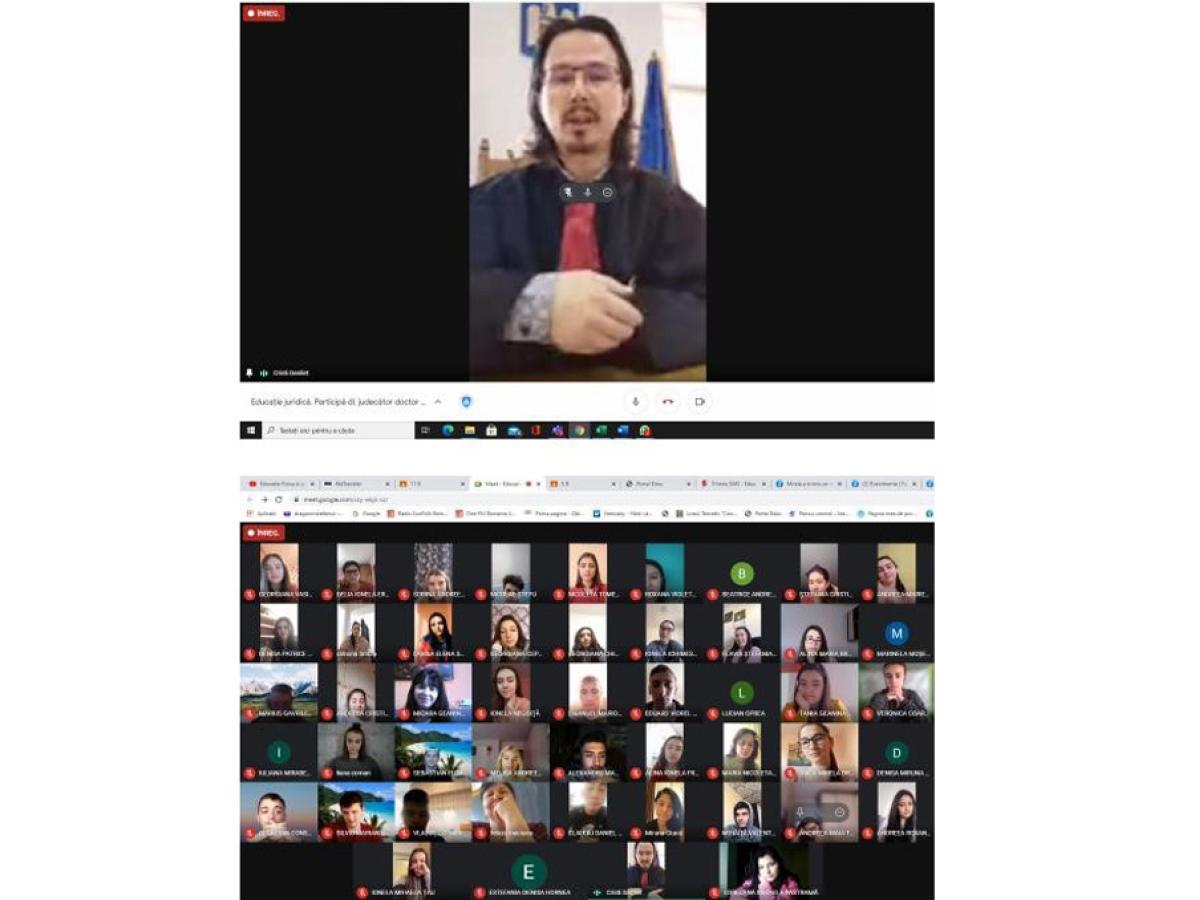 * săptămâna trecută, 60 de elevi ai liceului au avut parte de o lecție online interactivă despre drepturi, reguli și consecințele nerespectării acestora * judecătorul Cristi Danileț le-a oferit tinerilor și informații utile despre cum să interacționeze în siguranță în mediul online