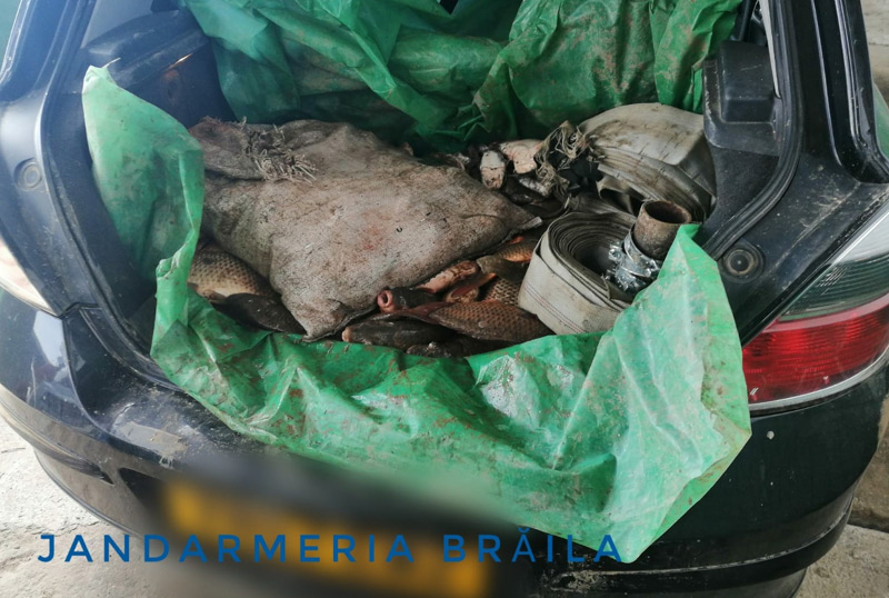 Sâmbătă, în jurul orei 11.00, efective din cadrul Inspectoratului de Jandarmi Județean (IJJ) Brăila au depistat în apropiere de localitatea Stanca, kilometrul fluvial 220, cinci bărbați cu vârstele cuprinse între 35 și 58 ani. Aceștia pescuiau cu ajutorul a trei plase de pescuit de tip prostovol, cu care prinseseră 507 kilograme de pește respectiv 341 kg din specia crap și 166 kg din specia caras. În cauză, jandarmii brăileni au întocmit procesele-verbale de sesizare privind săvârșirea infracțiunilor de “producerea, importul, deținerea, comercializarea sau folosirea la pescuit de către persoanele neautorizate a năvoadelor, voloacelor, prostovoalelor, vârșelor, vintirelor, precum și a altor tipuri de unelte de pescuit comercial” și “deținerea, transportul sau comercializarea fără documente legale a peștelui și a altor viețuitoare acvatice obținute din pescuit ori produselor din pește” , fapte prevăzute și pedepsite de articolul 64 lit. I și H din OUG 23/2008. Cei cinci sunt acum cercetați penal.
