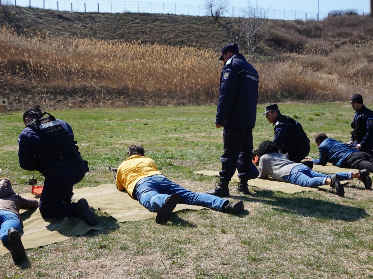 Adunarea s-a strigat, joi, la sediul IJJ, după care am pornit “în formaţie” către Poligonul Muchea. După instructaj, inspectorul şef al Jandarmeriei Brăila, col. Vasile Moţ, a tras trei focuri de reglaj, explicând ziariştilor cum să ia linia de ochire cât mai bine pentru a avea punctaj mare.