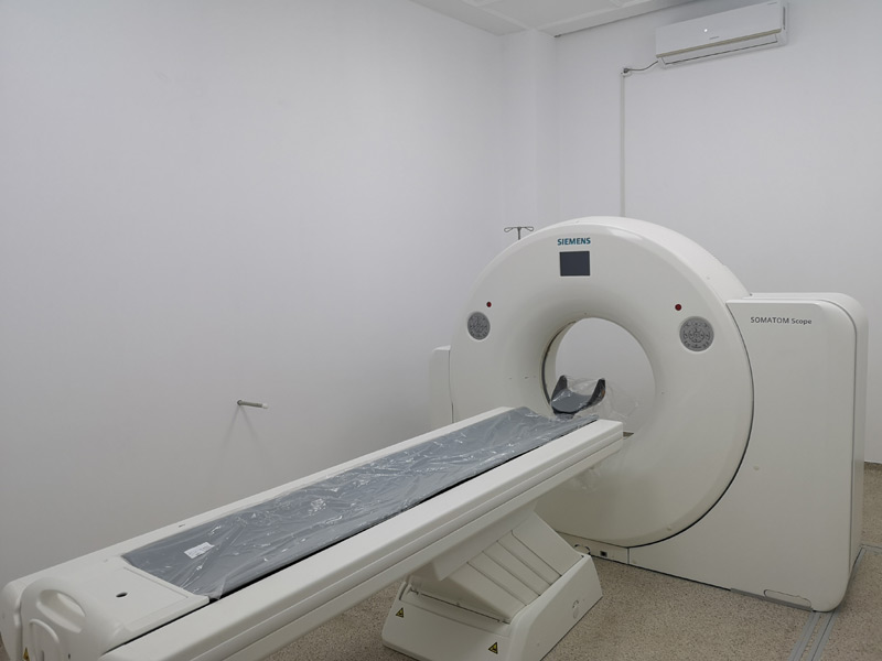 Dar să revenim la noua achiziţie, computerul tomograf. Aparatul medical este autorizat şi gata de a sprijini nevoile în creştere pentru această investigaţie. De altfel, acesta a fost şi motivul care a stat la baza acestei investiţii făcută de dr. Claudiu Leonida. Automat, clinica de ecografie s-a transformat într-una de imagistică medicală. Păstrând parteneriatul cu Siemens România, CT-ul provine de la această firmă şi este model Siemens Somatom Scope Power, util în numeroase domenii medicale, dar mai ales în oncologie.