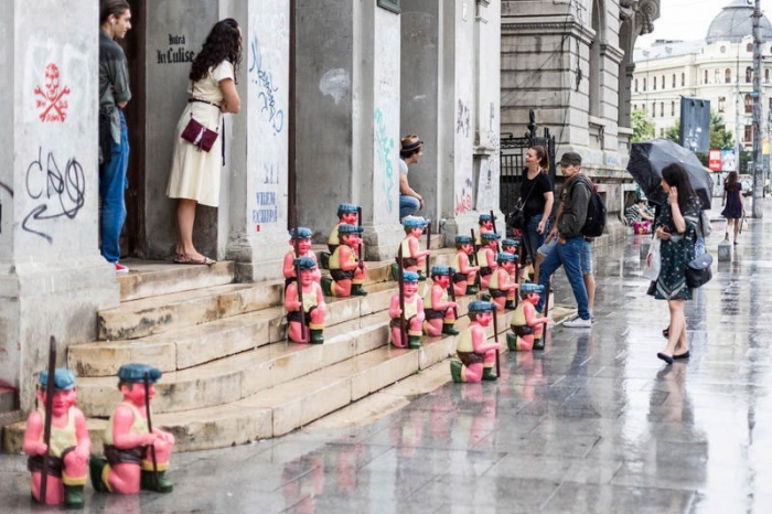 Bucureştenii care au trecut, săptămâna aceasta, prin faţa Facultăţii de Istorie de la Universitate, au putut „întâlni" 30 de mineri pe scările intrării în clădire şi în apropiere, relatează Hotnews.ro. „Minerii de grădină", aşa cum au fost botezaţi de artistul Emanuel Borcescu, au fost expuşi timp de o singură zi, miercuri, în Bucureşti.